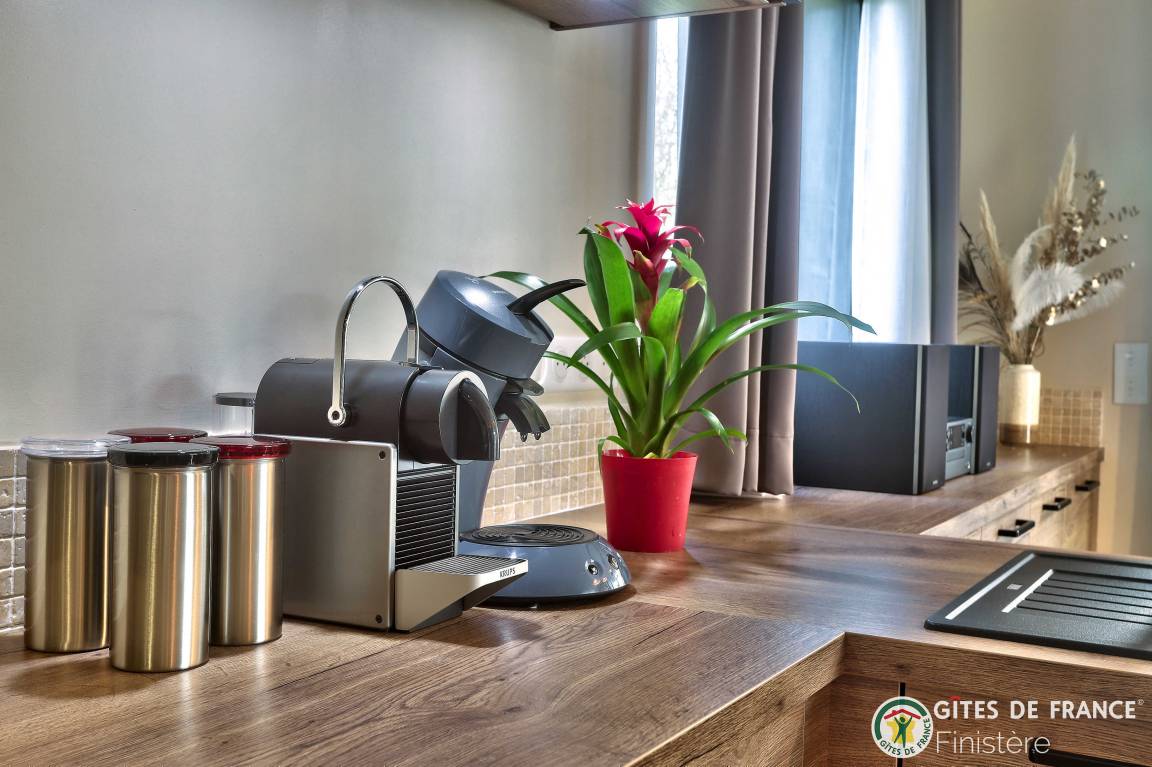 „Le top du gîte avec tout ce qu'on en attend. Propre, net, confortable, belle décoration, fonctionnel. Pour exemple 3 cafetière pour prendre en compte les différents standards. Un accueil des plus sympathiques d'Abel. Un ensemble très agréable, très convivial. On trouve meme un bouquet de fleurs fraîches a notre arrivée sans compter les traditionnelles crêpes et autre specialite locales. Je recommande sans réserve ce gîte. Que du bonheur.“