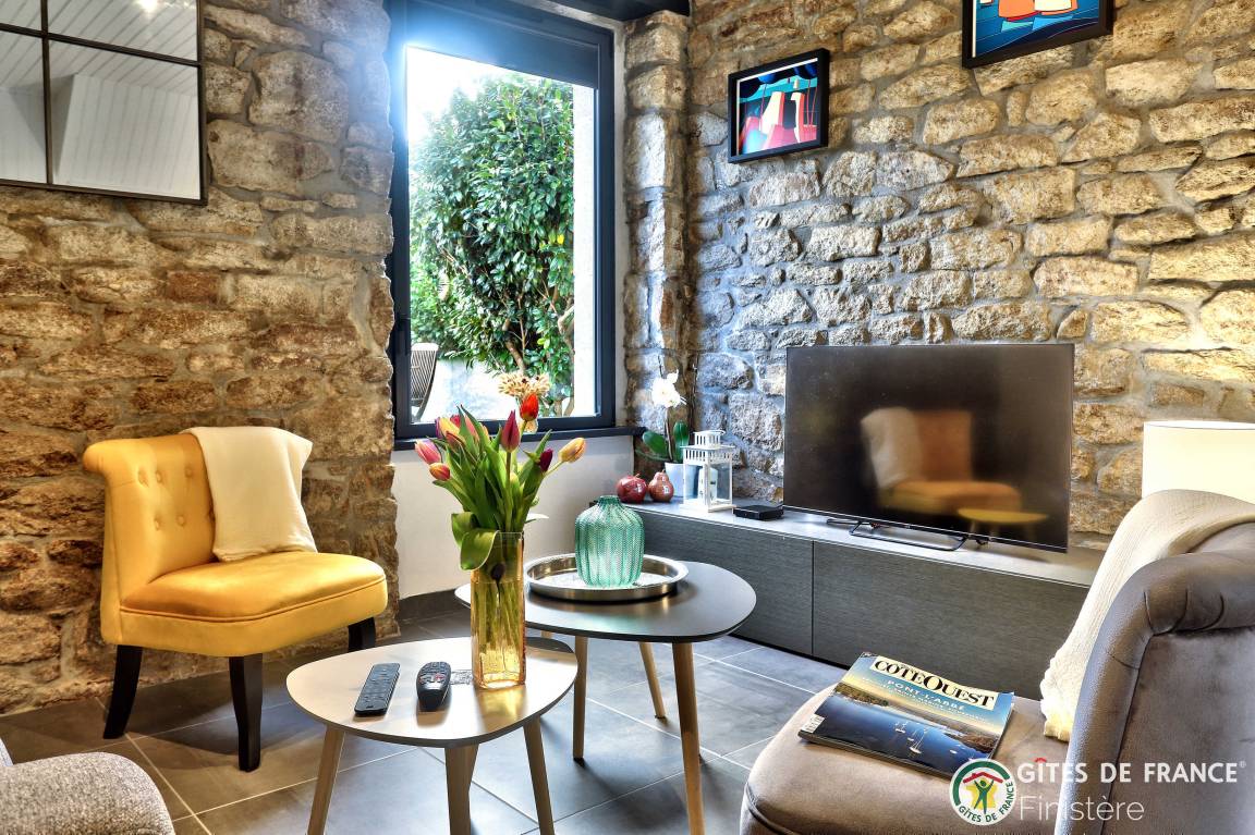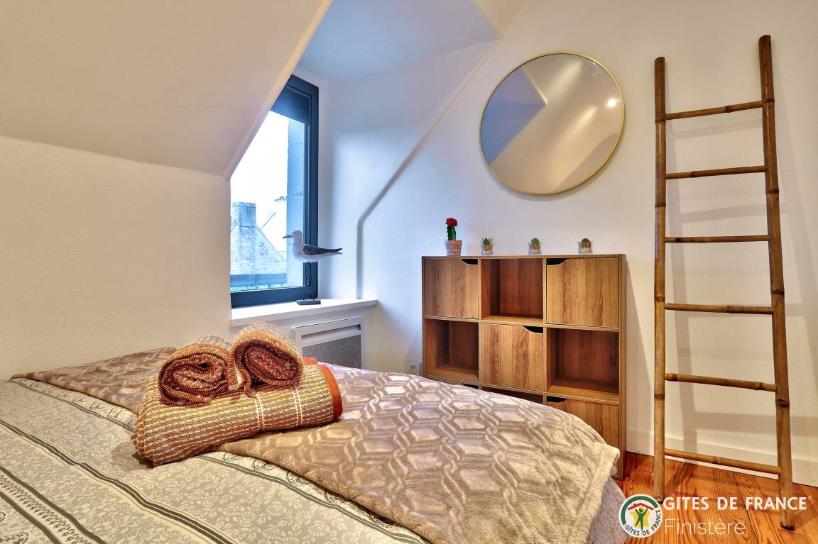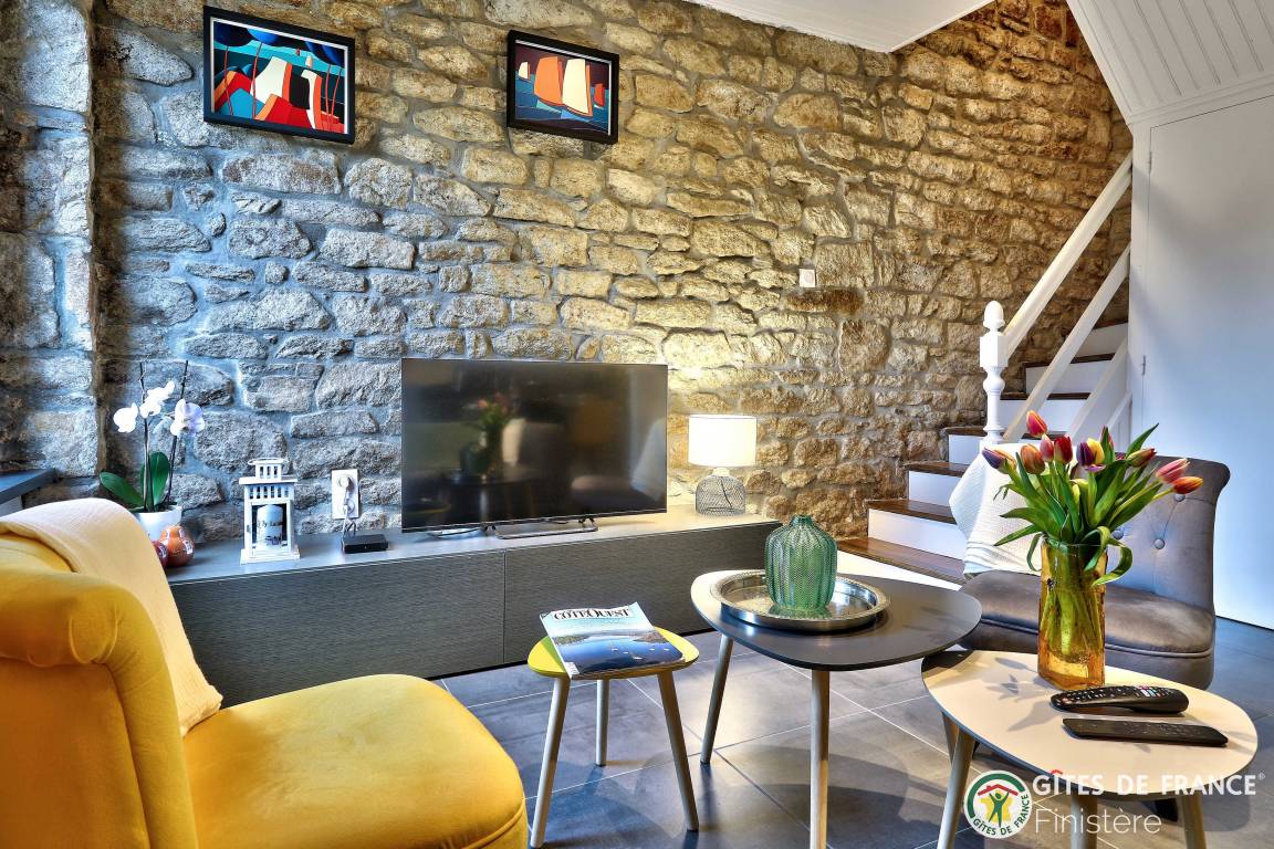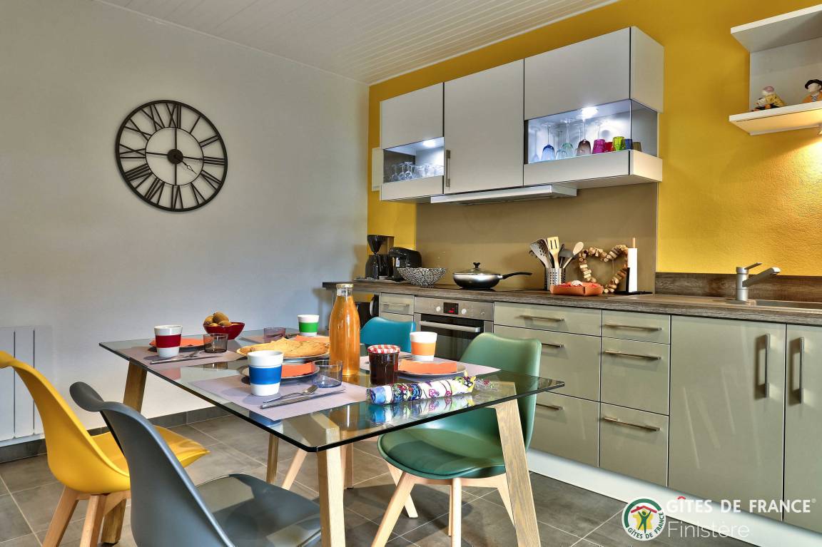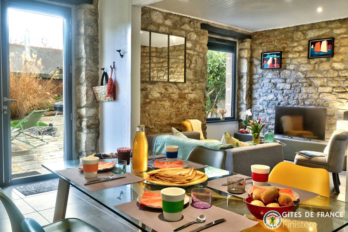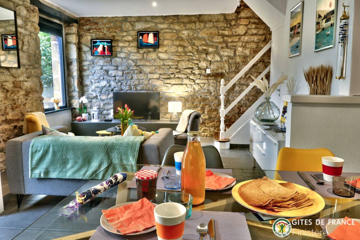 „Très beau gîte bien situé et bien équipé La propriétaire est très serviable et très sympathique Calme assuré Literie de très bonne qualité Situé à 2 km du centre ville tout se fait à pied Pour la restauration je vous recommande la crêperie BRUT DE POMME il faut réserver mais rapport qualité prix au rendez-vous La glacière à saint guenol très bonne glace La plage de la torche magnifique“