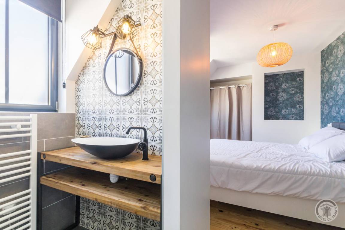„Parlons d’abord du propriétaire: Thierry est très accueillant et répond très rapidement à vos demandes. Gîte très confortable. Tout y est, même le jacuzzi. Literie excellente, deco sympa, jardin complet( table/ chaise/ bbq…). Ce gîte est très bien entretenu. Gite excessivement bien situé, à 4 km du mont saint Michel. C’est un joli havre de paix.“