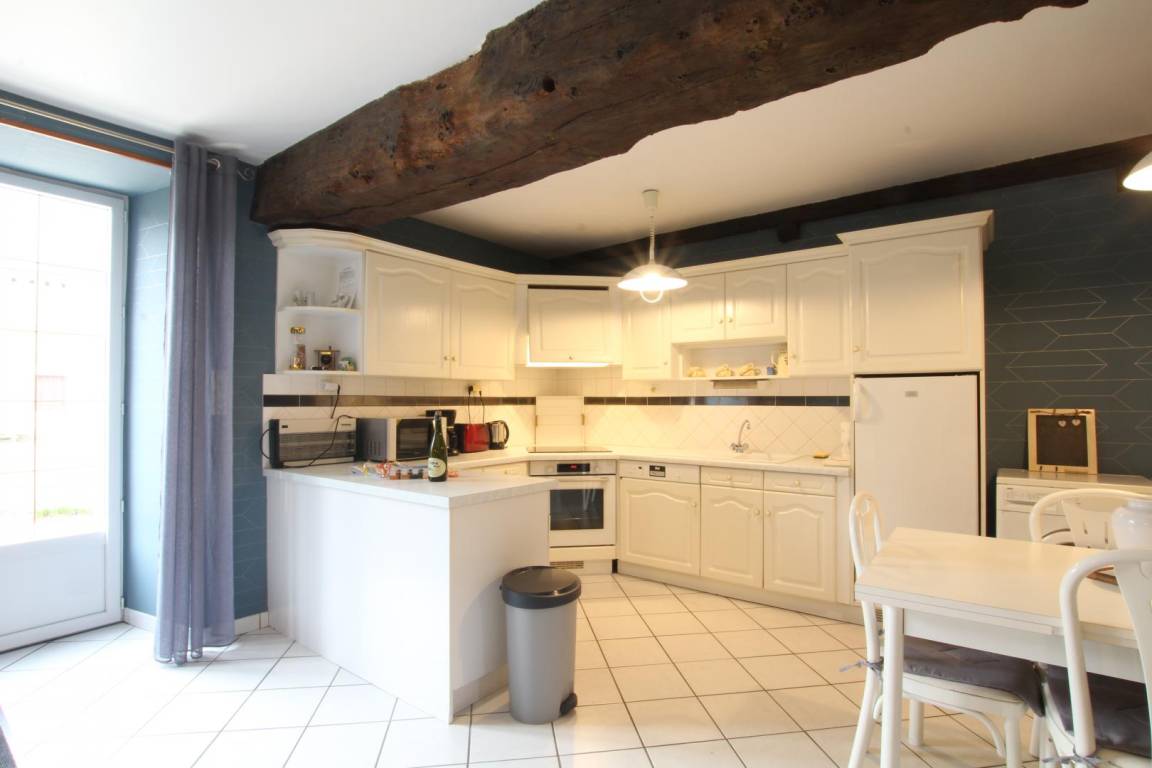 Haus, das an eine andere Mietwohnung angrenzt. Im Erdgeschoss: Wohnzimmer mit Sofa (TV, Internet). Offene Einbauküche (Backofen, Mikrowelle, Geschirrspüler, Gefrierfach). Obergeschoss: Schlafzimmer 1 (2 Einzelbetten 80x200). Schlafzimmer 2 (1 Bett 140x190). Duschraum mit WC (Dusche). Waschmaschine und Trockner im Wohnzimmer. Bettwäsche wird gestellt und Betten bei Ankunft bezogen. Handtücher können gemietet werden. Reinigungsservice auf Anfrage. Elektroheizung gegen Aufpreis. Nicht eingezäuntes Grundstück. Gemeinsamer Garten. Private Terrasse. Gartenmöbel. Grill. Parkplatz für mehrere Fahrzeuge.