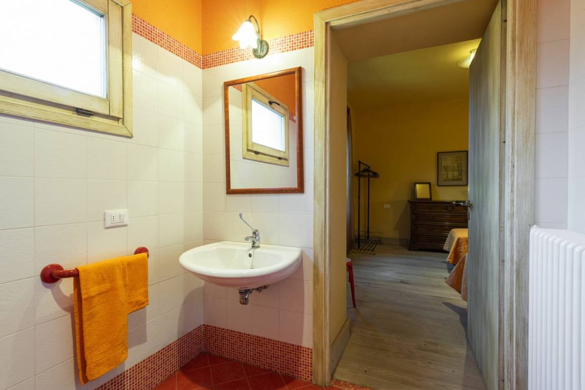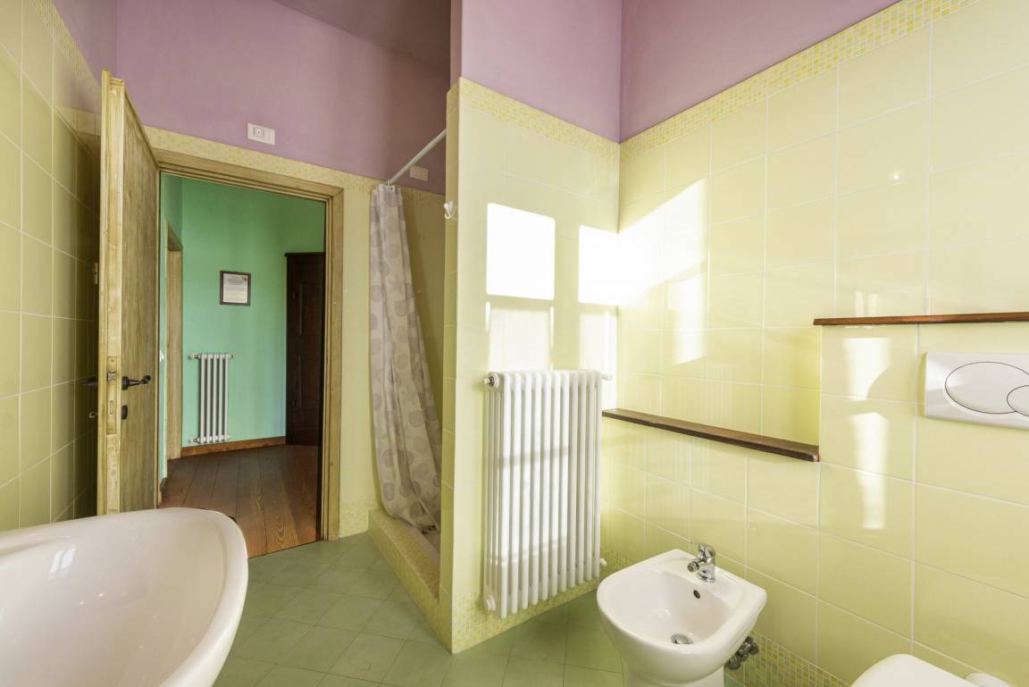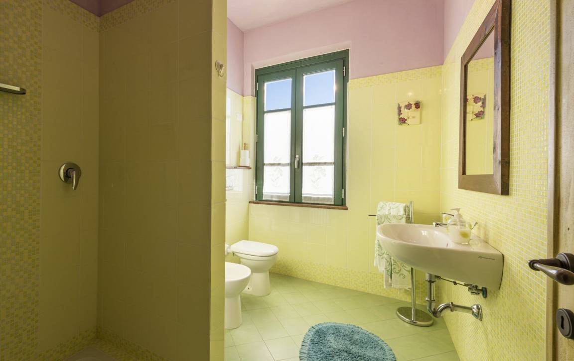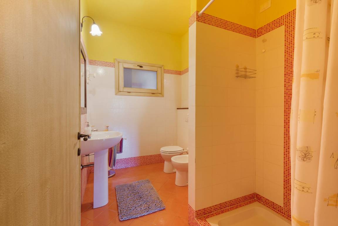 Badezimmer 2: Waschbecken, WC, Bidet, Dusche.