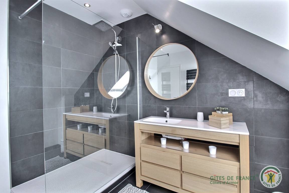„We loved staying in this gite. It is conveniently situated close to shops, including several boulangeries and a mini supermarket, while Intermarché is only a few minutes awy by car. The gite is beautifully renovated with a traditional Breton frontage but a modern tastefully decorated yet practicable interior. It was clean, comfortable and very well equiped. We enjoy walking and there were several excellent walks from the gite and easy access to the Sentier des Douaniers. Close by were several interesting towns and villages - we particularly enjoyed visits to Saint-Quay-Portrieux and Châtelaudren - and the Sentier Littoral was just superb. Our thanks to Mme Taillefer for her warm welcome and the opportuity to stay in her lovely gite.“