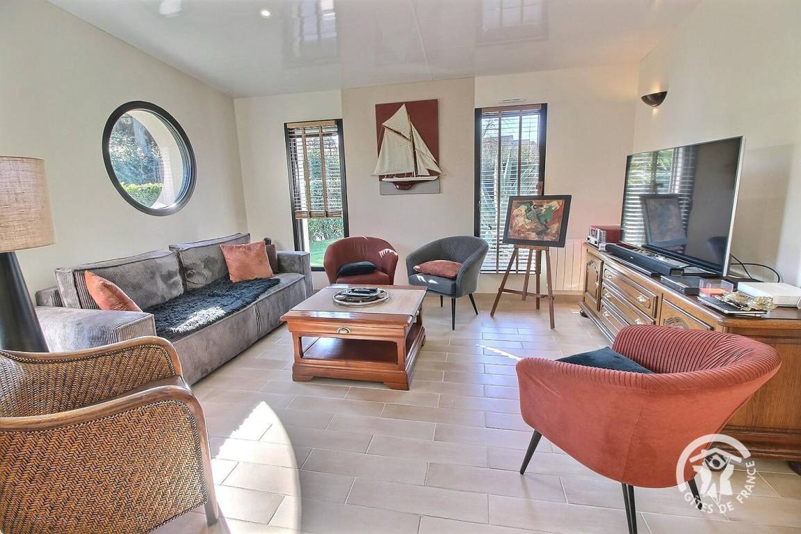 Sein charmanter Vorteil? Eine gemütliche und helle Terrasse im Herzen des Hauses, die auf drei Seiten umgeben ist und einen vor Blicken geschützten Kokon bietet.