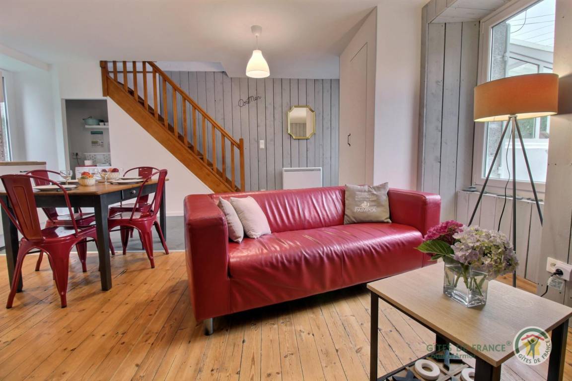 Ihre Ferienwohnung umfasst im Erdgeschoss: Küche, Wohnzimmer. Obergeschoss: 2 Schlafzimmer (1 Doppelbett 160x200, 2 Einzelbetten 90x190 Etagenbett), Badezimmer mit Dusche und WC. Der Vorteil dieses Ferienhauses: In einem Nebengebäude vor Ort steht Ihnen ein Spielzimmer zur Verfügung. 2 Fahrräder für Erwachsene verfügbar. Sie können auch eine private Terrasse von 16 m² und einen geschlossenen Außenbereich von 30 m² mit privatem Kunstrasen genießen. Parken Sie Ihr Fahrzeug in einem geschlossenen privaten Innenhof von 100 m². Reihenhaus.