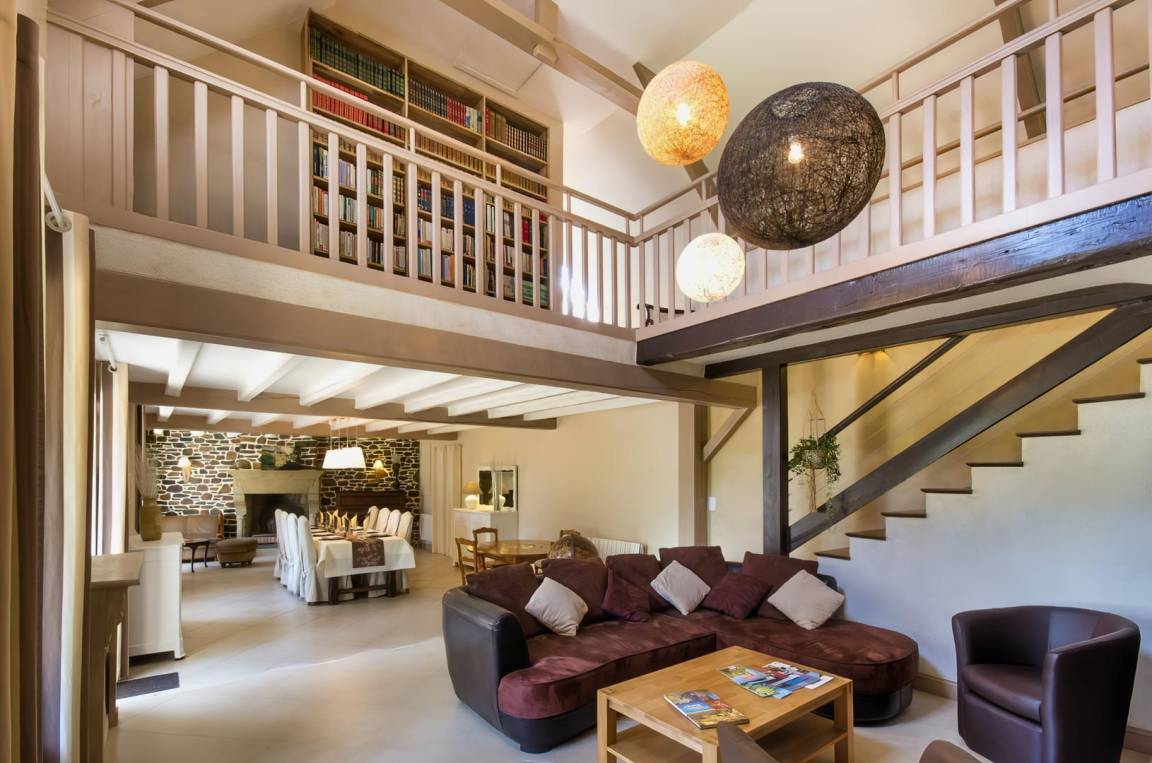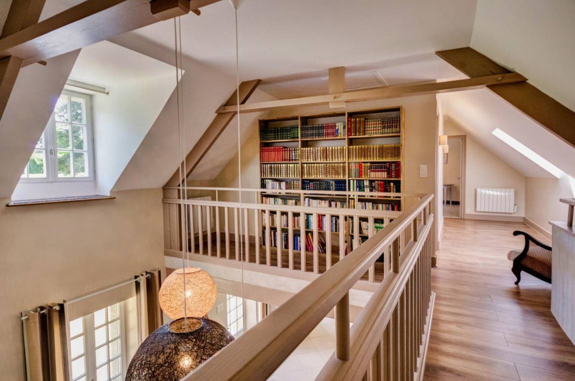 Obergeschoss: Zwischengeschoss mit 3 großen Schlafzimmern (2 100-cm-Betten, 2 160-cm-Betten), Badezimmer mit Badewanne, große Bibliothek mit mehr als 500 Büchern, Toilette.