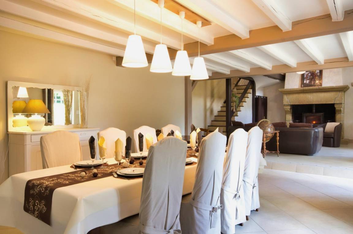 Ihre Ferienwohnung mit harmonischer Dekoration umfasst im Erdgeschoss: gemütliches Wohnzimmer mit großem Kamin, Fernseher mit zahlreichen französischen und ausländischen Kanälen, großes Esszimmer, voll ausgestattete Einbauküche, Entspannungsbereich mit Sauna, Badezimmer mit Spaziergang -in Dusche, WC.