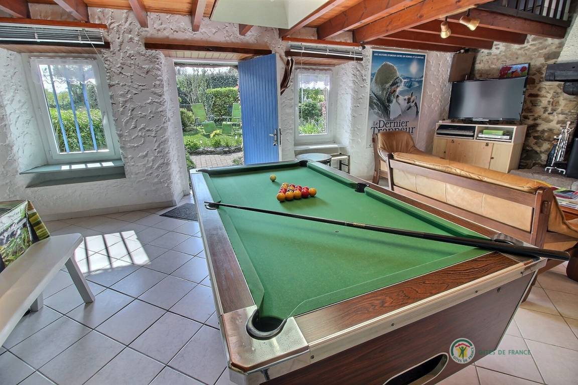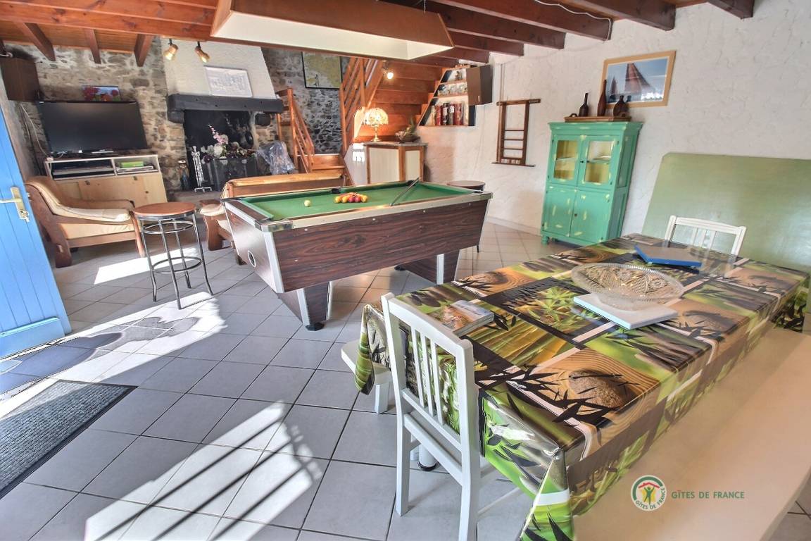 Dieses Ferienhausangebot enthält: Im Erdgeschoss: einen Ess- Wohnraum von 35 m² mit sichtbaren Steinen und Balken, ein Billard, eine Einbauküchenecke. Im 1. Stock: 1 Schlafzimmer (1 Bett x 2 Personen 160x200 + 1 Babybett), ein Bad mit Dusche und WC. Auch sind vorhanden: Eigener geschlossener Baumgarten von 30 m², schön strukturiert. Parkplatz vor der Unterkunft. Kurtaxe vor Ort zahlbar.