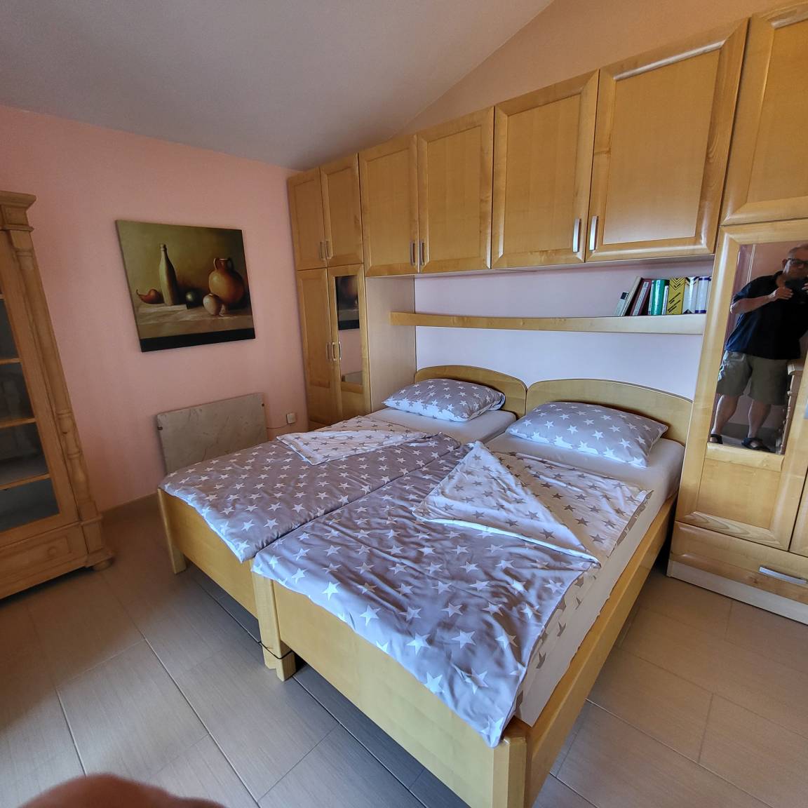 Das Elternschlafzimmer verfügt über Doppelbetten ( 2 x 90 x 200 cm ).