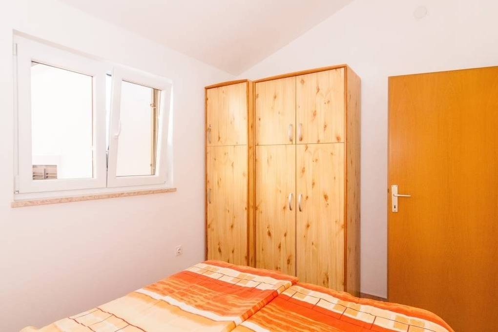 Das Elternschlafzimmer verfügt über Doppelbetten ( 2 x 90 x 200 cm ). Zwei Kinder können auf der bequemem Ausziehcouch im Wohnbereich schlafen. Ein täglicher "Umbau" ist nicht nötig, da sich der eigentliche ( zusätzliche ) Essbereich auf der überdachten Terrasse vor der Wohnung befindet. Bedingt durch die eingebauten Kleiderschränke ist genügend Stauraum vorhanden.[nbsp]