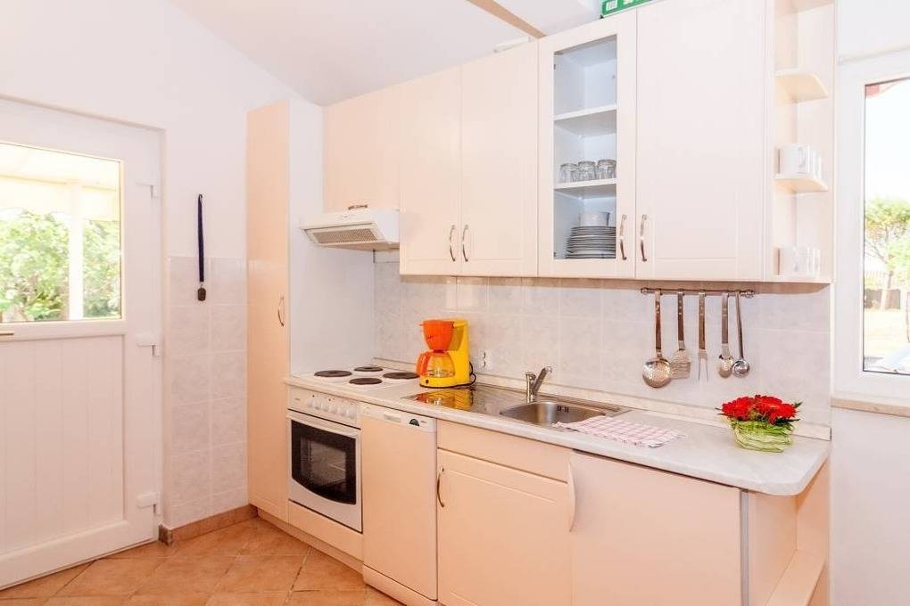 In den Schränken der Küche finden Sie ausreichend Platz für Stauraum und die Küchenkomplettausstattung. Ein 4-Platten-Herd und Backofen, Dunstabzugshaube, Kühlschrank mit Eisfach, Kaffeemaschine, Mikrowelle, Spülmaschine, Elektrogrill, Wasserkocher sowie Staubsauger runden das Angebot ab.