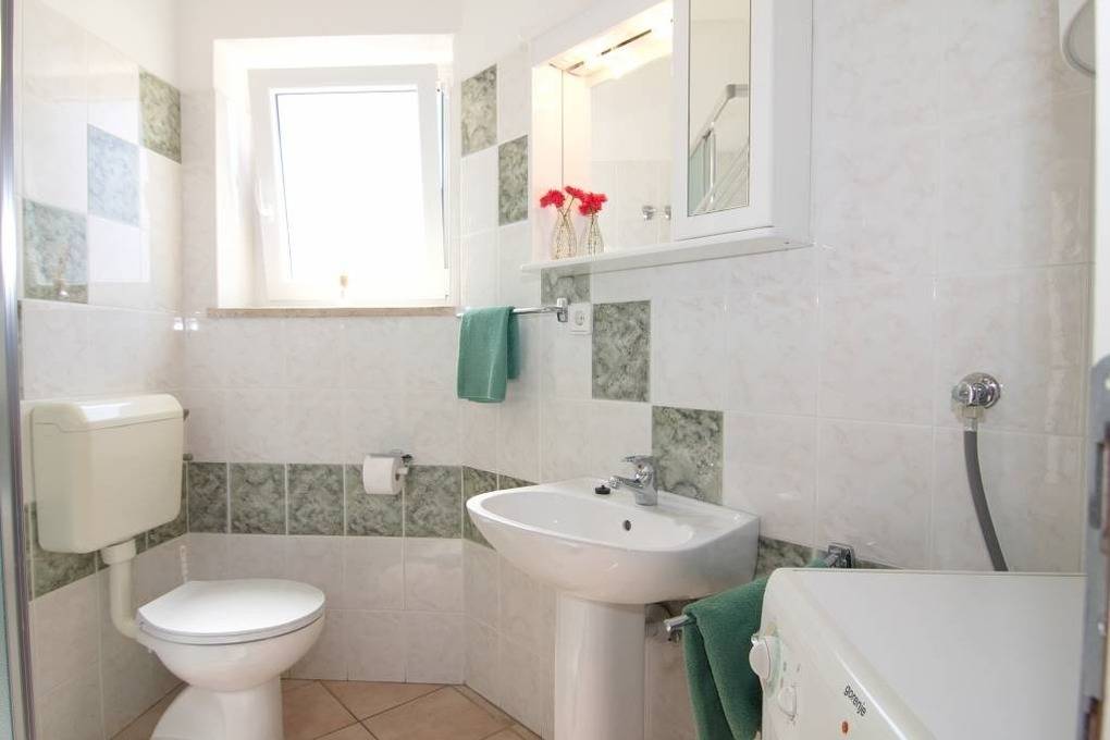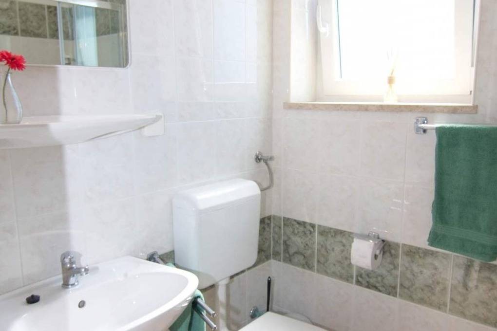 Die beiden Bäder mit Dusche haben ein Fenster zur Belüftung. Im Elternbad befindet sich die integrierte Waschmaschine.
