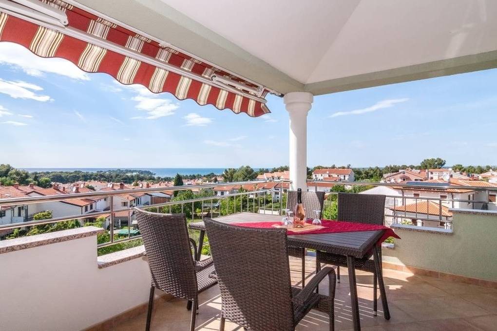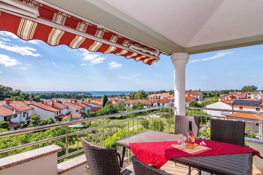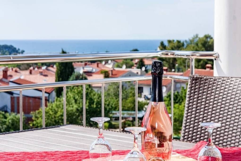 Die im zweiten Obergeschoß als Penthousewohnung gelegene Ferienwohnung mit einem 270 Grad Rundumblick auf die Plava Laguna ( blaue Lagune ), auf die Adria Richtung Venedig sowie auf die italienischen und slowenischen Alpen bewohnen Sie mit bis zu 5 Personen. Gäste bezeichnen diese Ferienwohnung auch als Präsidentensuite. Der Standort in einer gesellschaftlich beliebten Wohnlage von Porec wird Sie begeistern.