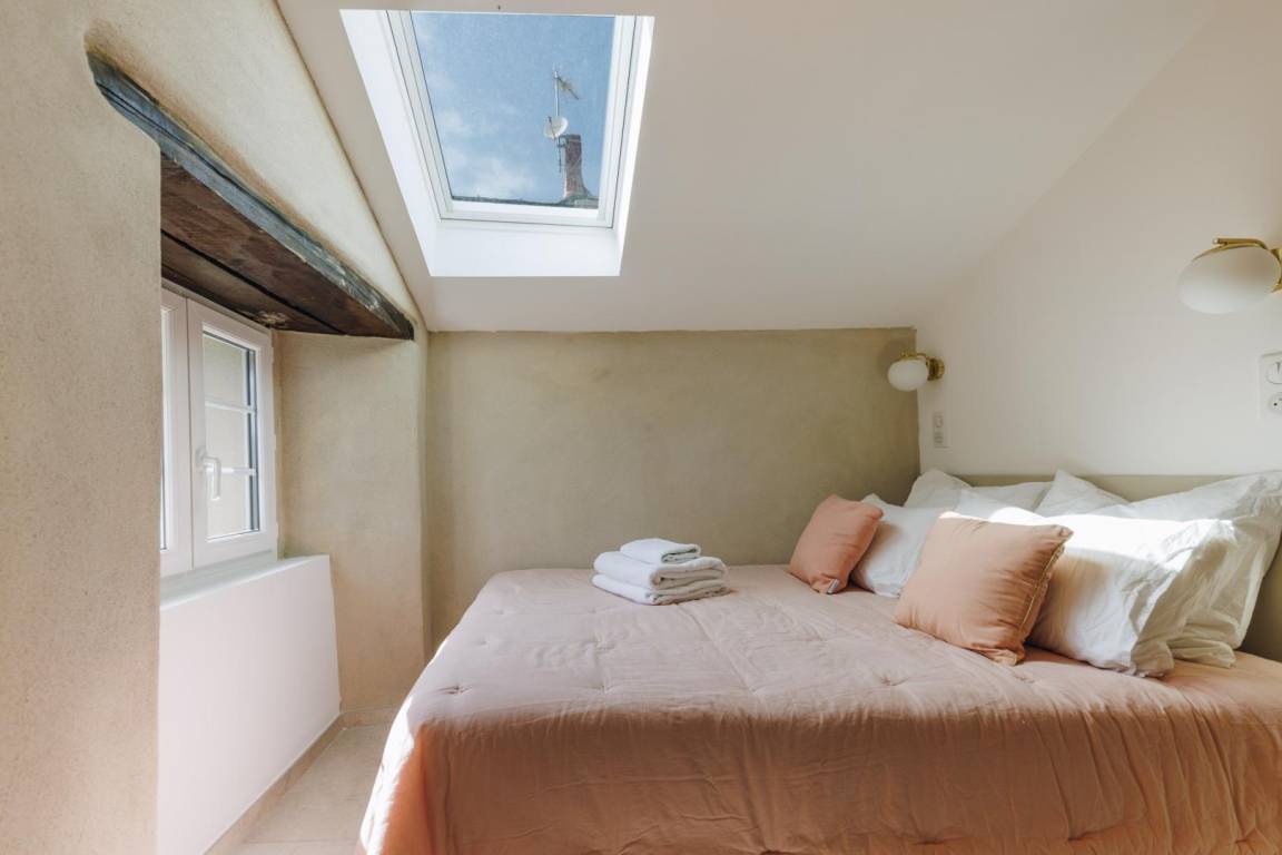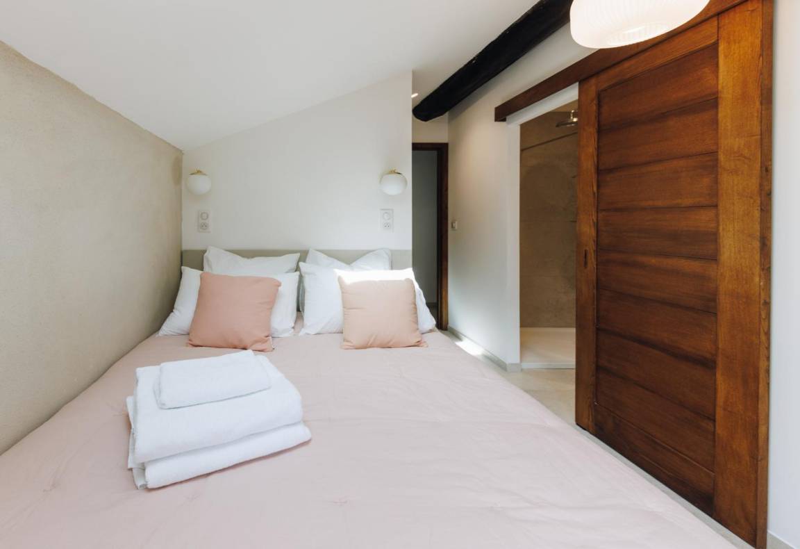 - 1 Mansardenzimmer mit 1 Bett 140x180 cm mit eigenem Bad/WC.