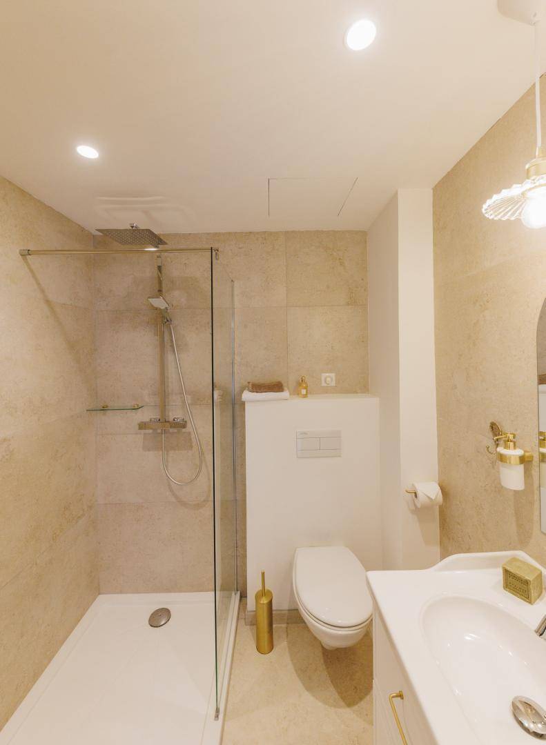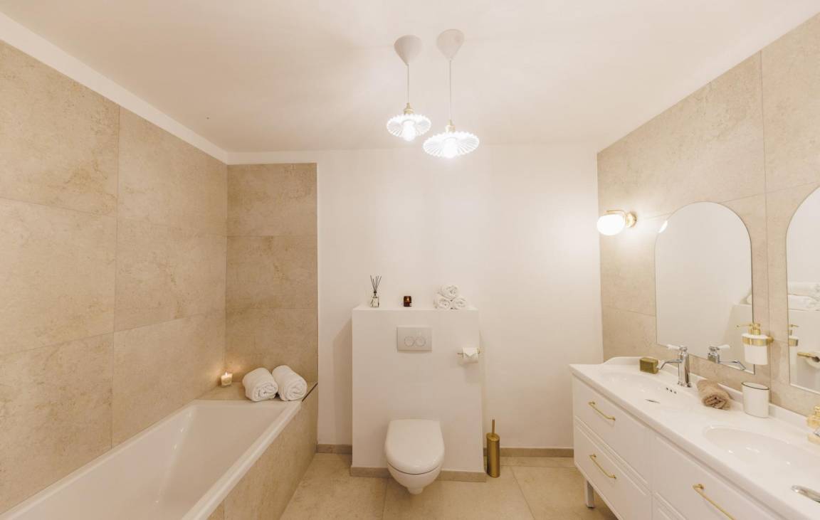 - 30 m² große Terrasse, die zwei Schlafzimmern im 1. Stock vorbehalten ist.