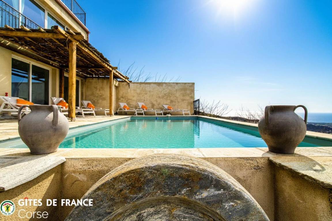 „Le gîte est magnifiquement situé avec une très belle vue de la montagne et de la mer, le gîte est très fonctionnel, très spacieux, la piscine est chauffée, nous avons passé un très bon séjour et pour ceux qui aime marcher on peut faire de belles ballades sans prendre la voiture. Accueil tres sympathique.“