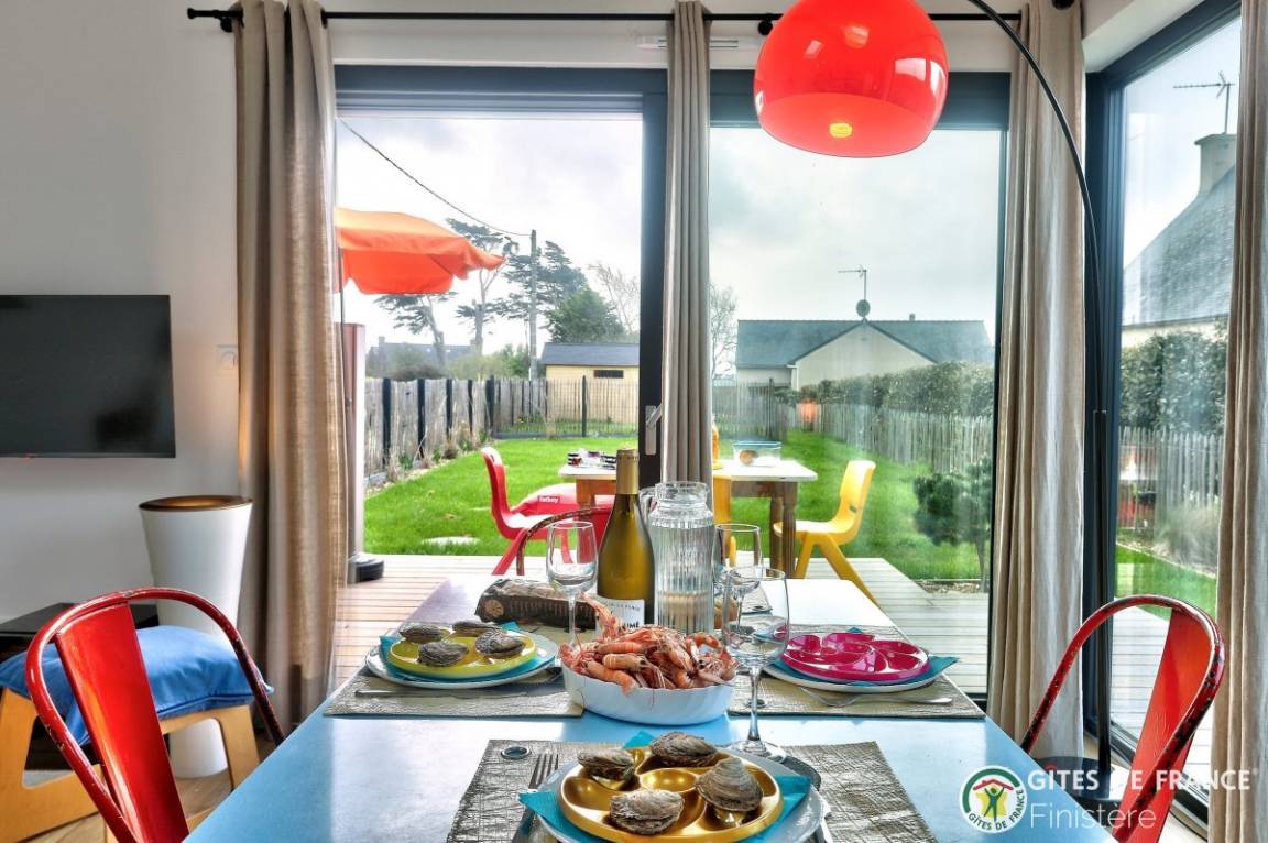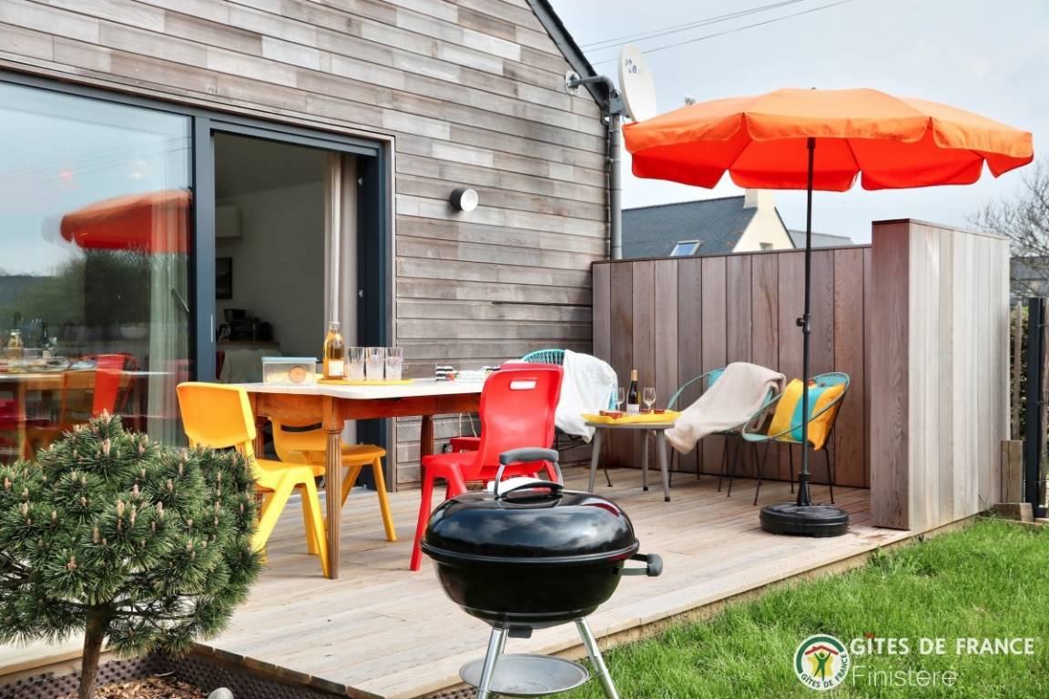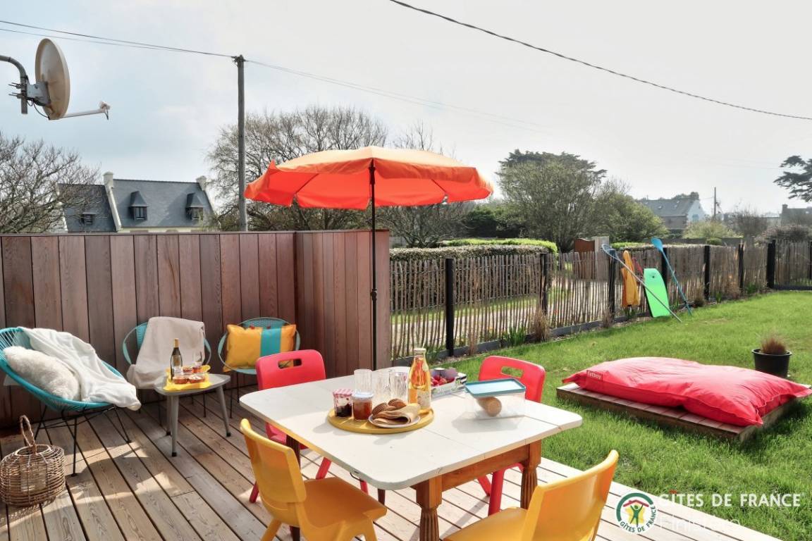 „Der Haus ist klein, aber fein und es ist vor allem sehr hell. Die Küche ich prima ausgestattet. Im Garten kann man wunderbar sitzen und in der Nähe finden sich zahlreiche touristische Möglichkeiten für Ausflüge auf die Insel Quessant oder nach Brest und zu den zahlreichen Märkten. Der Weg zum Stand beträgt keine 5 Minuten. Wer einen ruhigen Platz für einen erholsam Bretagne-Urlaub sucht, ist hier richtig. Besonders schön war der freundliche Kontakt zu den Vermietern. Auch mit Fahrrädern lassen sich schöne Fahrten unternehmen. The house is small but fine and it is above all very bright. The kitchen is well equipped. In the garden you can sit wonderfully and nearby there are numerous tourist opportunities for excursions to the island of Quessant or to Brest and to the numerous markets. The walk to the beach is less than 5 minutes. If you are looking for a quiet place for a relaxing Brittany holiday, this is the right place. Especially nice was the friendly contact with the landlords. Bikes are a very opportunity.“