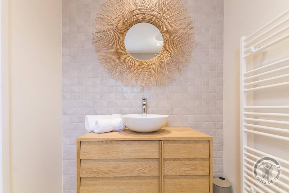 „Le gîte est très confortable, neuf, nickel. Une cuisine avec tout ce qu’il faut pour cuisiner. Mention particulière à la literie très confortable. Convient parfaitement pour une famille de 4. Tout près de la plage. Les hôtes sont prévenants et leur accueil est chaleureux.“