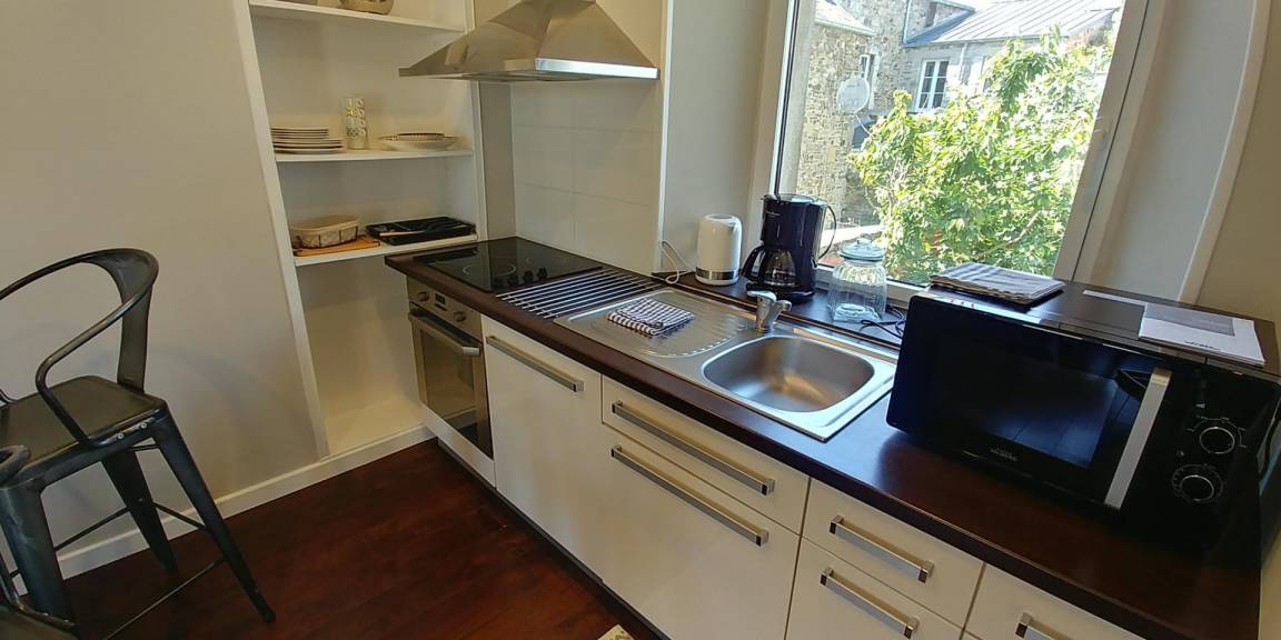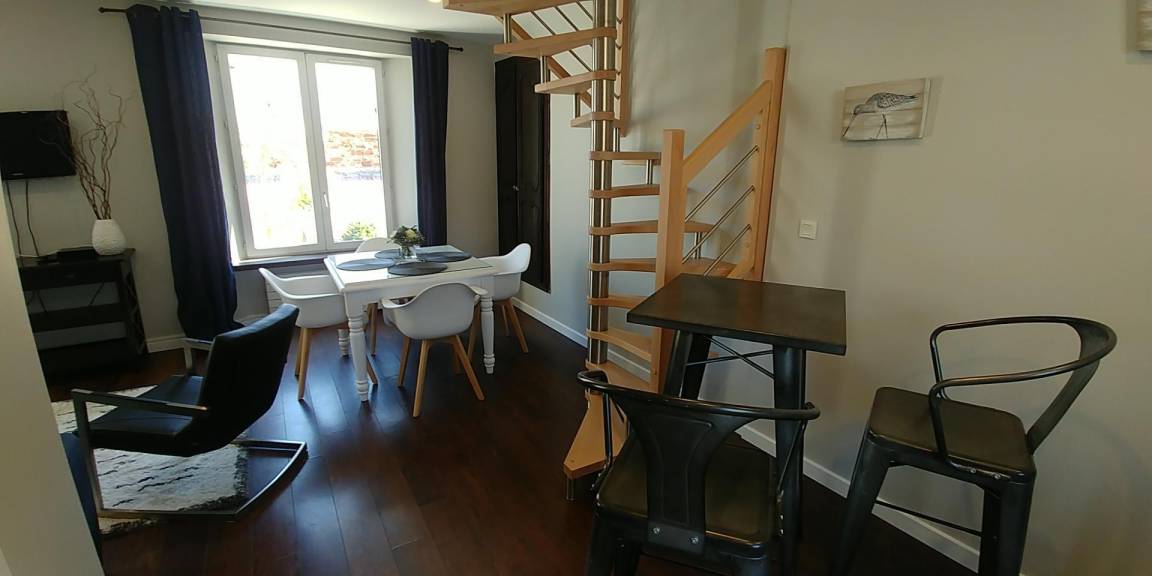 „Gîte bien placé avec commerces accessible à pied, au calme, bien aménagé et meublé avec goût.“