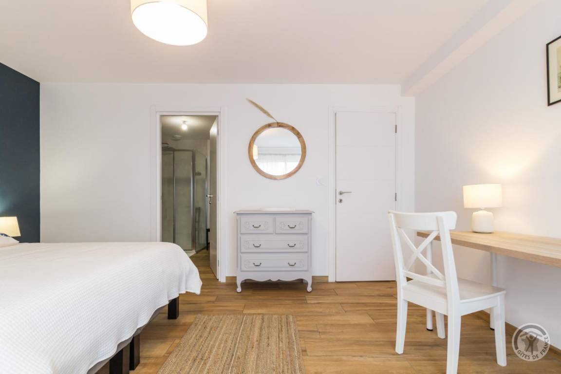 „Tout est fait pour vous faire passer un séjour magnifique dans ce gîte. Il est très spacieux - même à 10 avec les petits enfants nous ne nous sommes jamais senti à l'étroit. Parfaitement situé avec un accès plage à deux pas, la proximité du bourg et de ses commerces. Nous avons également apprécié d'y avoir trouvé une batterie de cuisine vraiment adaptée au grande tablée. Enfin à noter l'accueil très chaleureux du propriétaire, nous n'hésiterons pas à y retourner dès que possible.“