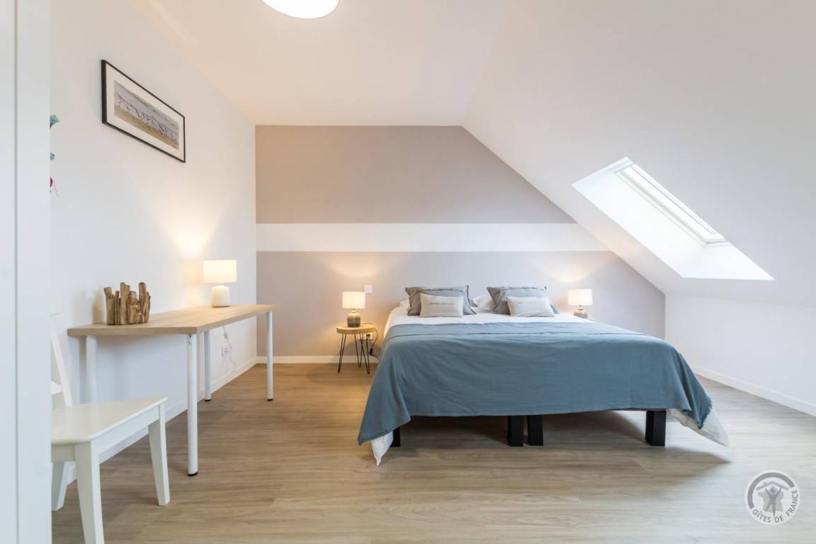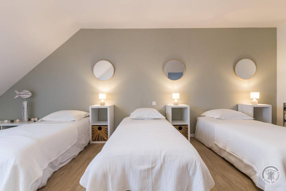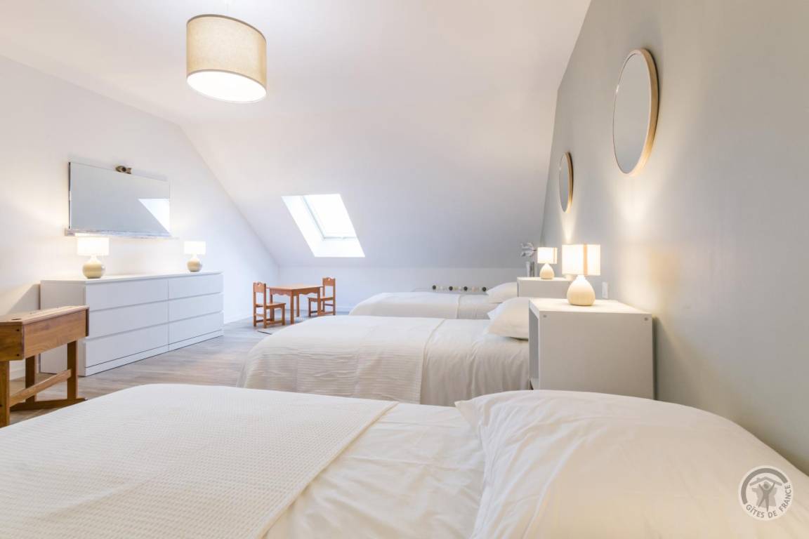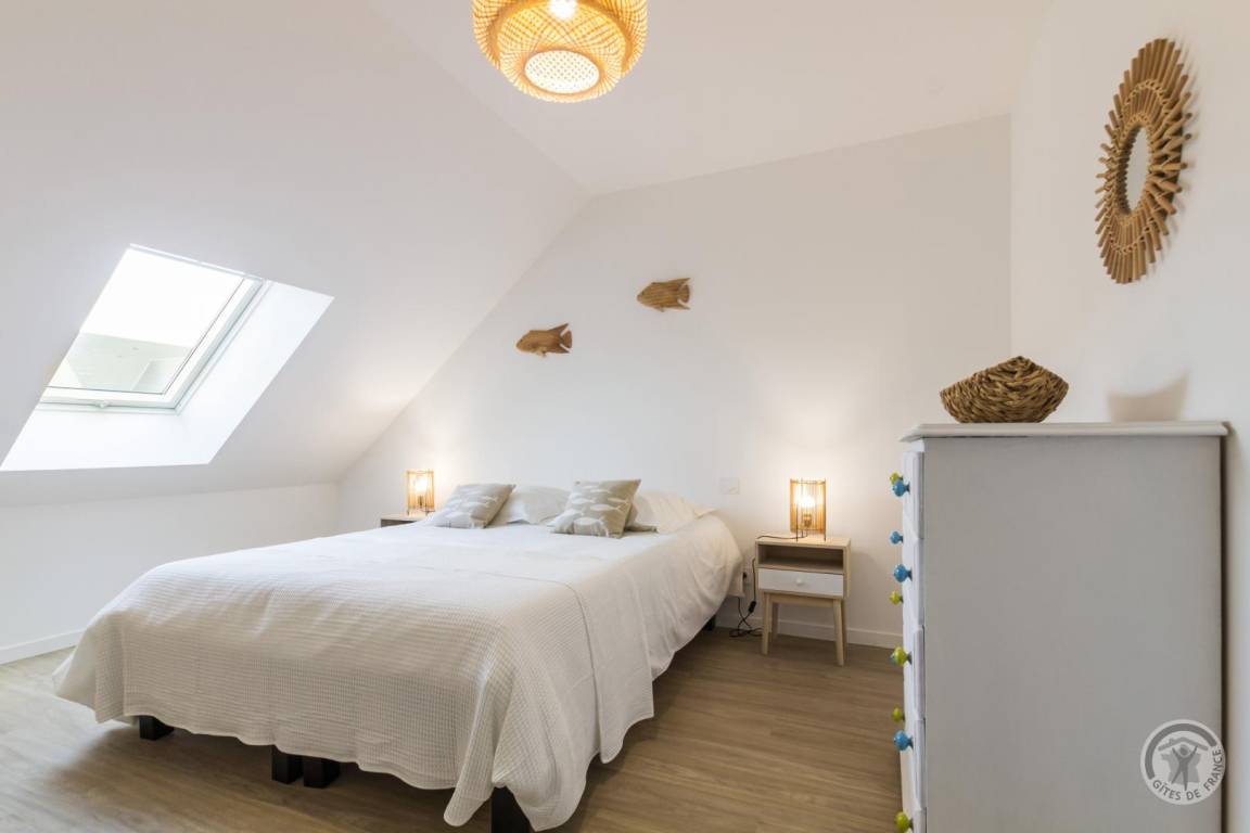 „Superbe gîte, des très grands volumes, y compris les chambres. Toutes les pièces sont très lumineuses, le séjour y est vraiment très agréable. L'équipement de cuisine est abondant, on peut vraiment y séjourner nombreux sans soucis. En plus à 2 pas de la plage magnifique, pas loin du bourg où l'on trouve tout. Bref, vraiment parfait, nous reviendrons.“
