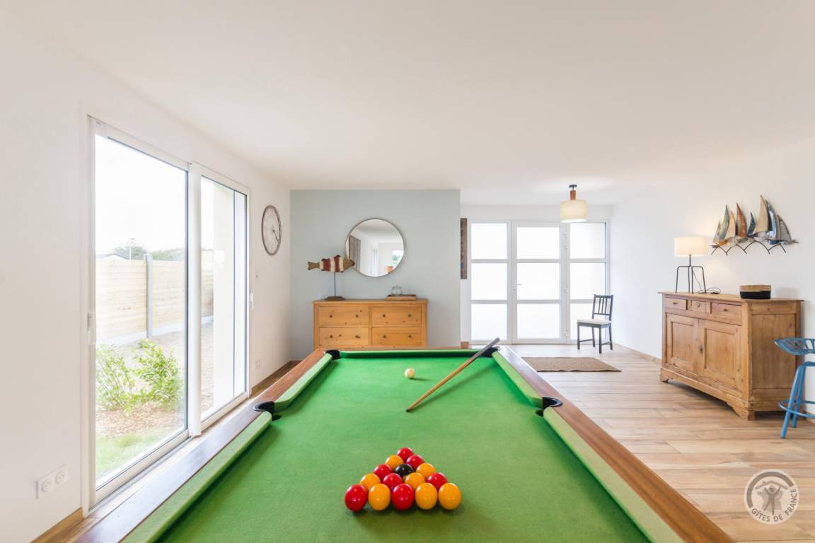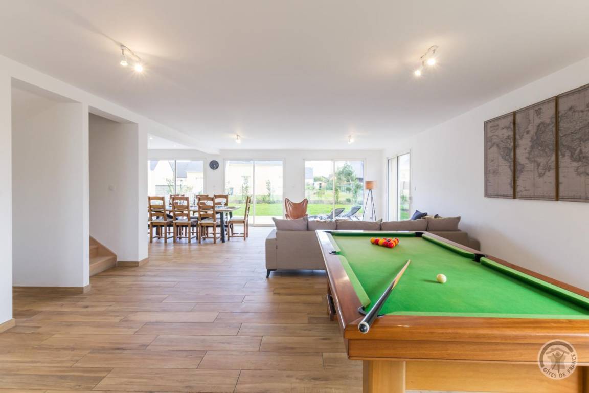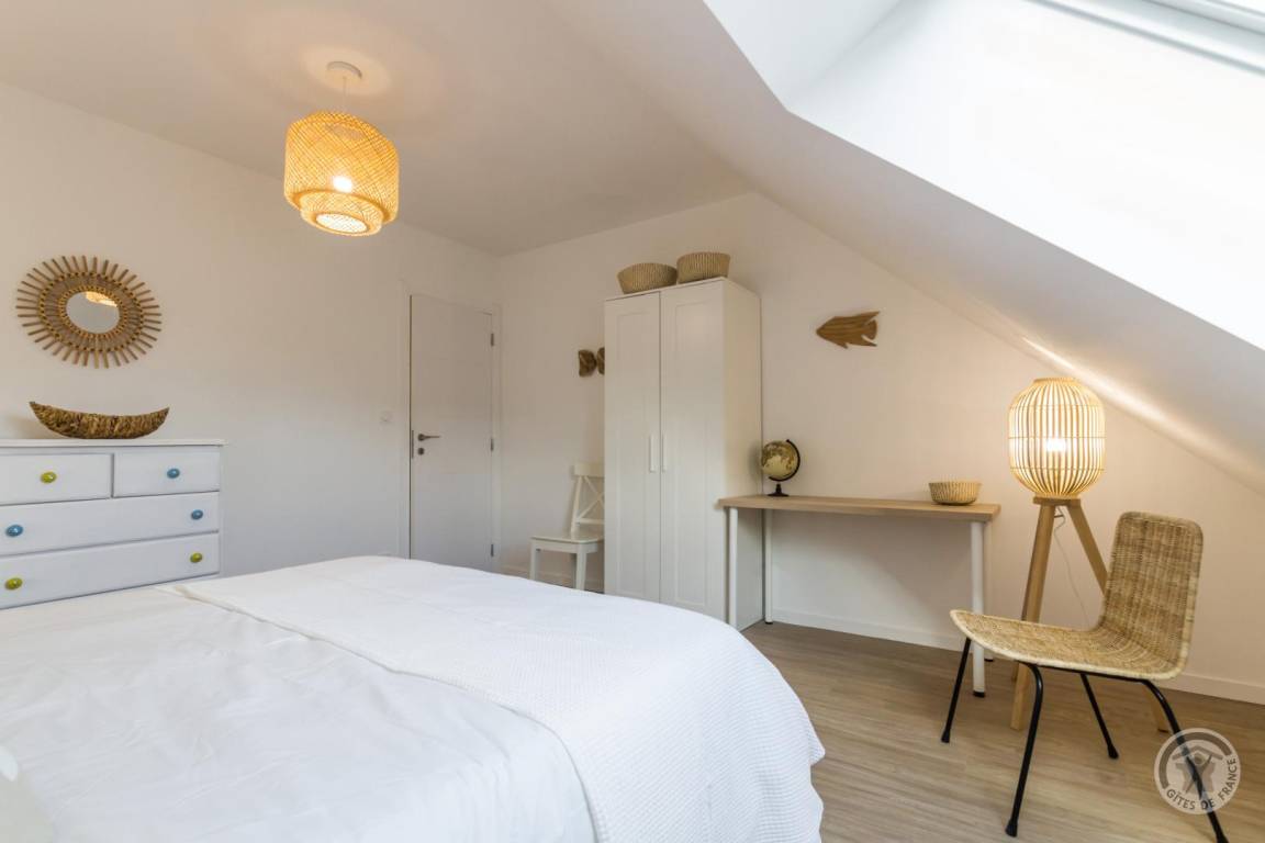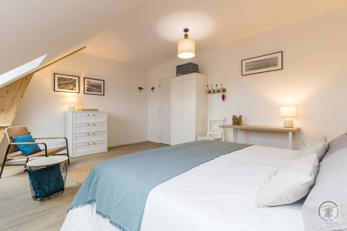 „Superbe gîte, des très grands volumes, y compris les chambres. Toutes les pièces sont très lumineuses, le séjour y est vraiment très agréable. L'équipement de cuisine est abondant, on peut vraiment y séjourner nombreux sans soucis. En plus à 2 pas de la plage magnifique, pas loin du bourg où l'on trouve tout. Bref, vraiment parfait, nous reviendrons.“