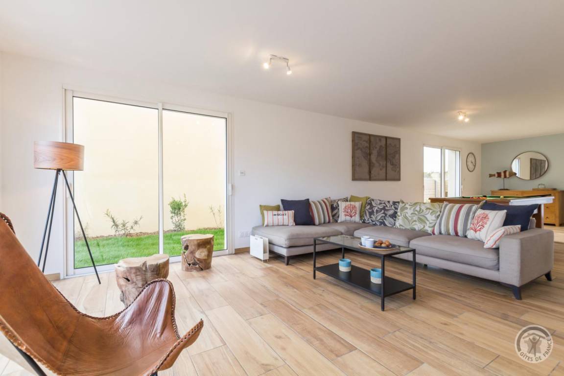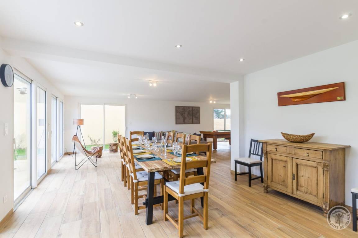 „Superbe gîte à 300m de la plage, spacieux, décoré avec goût et doté d’équipements et de matériaux de qualité. Nous avons passé une très agréable semaine réunissant 3 générations dans une maison ouverte sur une belle terrasse et espace vert, avec des beaux volumes pour que chacun y trouve sa place. La plage à pieds était le critère non négociable dans notre recherche de location, un vrai bonheur.“