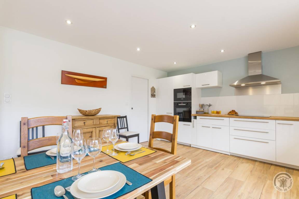 „C est le plus beau gîte que j ai fait. Nous étions 8 et très a l'aise au niveau de la place. Équipements et décoration parfaits. Proximité de la mer 300 m. Balade à vélo et très belle région a visiter. Le top. Merci“