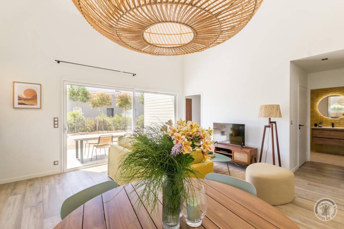 „Le logement est neuf, bien décoré et confortable. Tout le nécessaire est présent sur place et notre séjour s'est parfaitement déroulé. La plage à 500 mètres est très appréciable. Un point d'eau extérieur pour les retours de baignade serait malgré tout un plus :).À refaire“