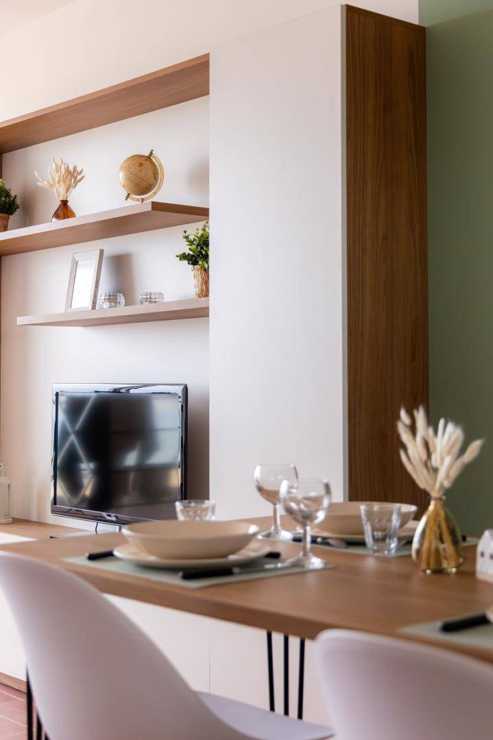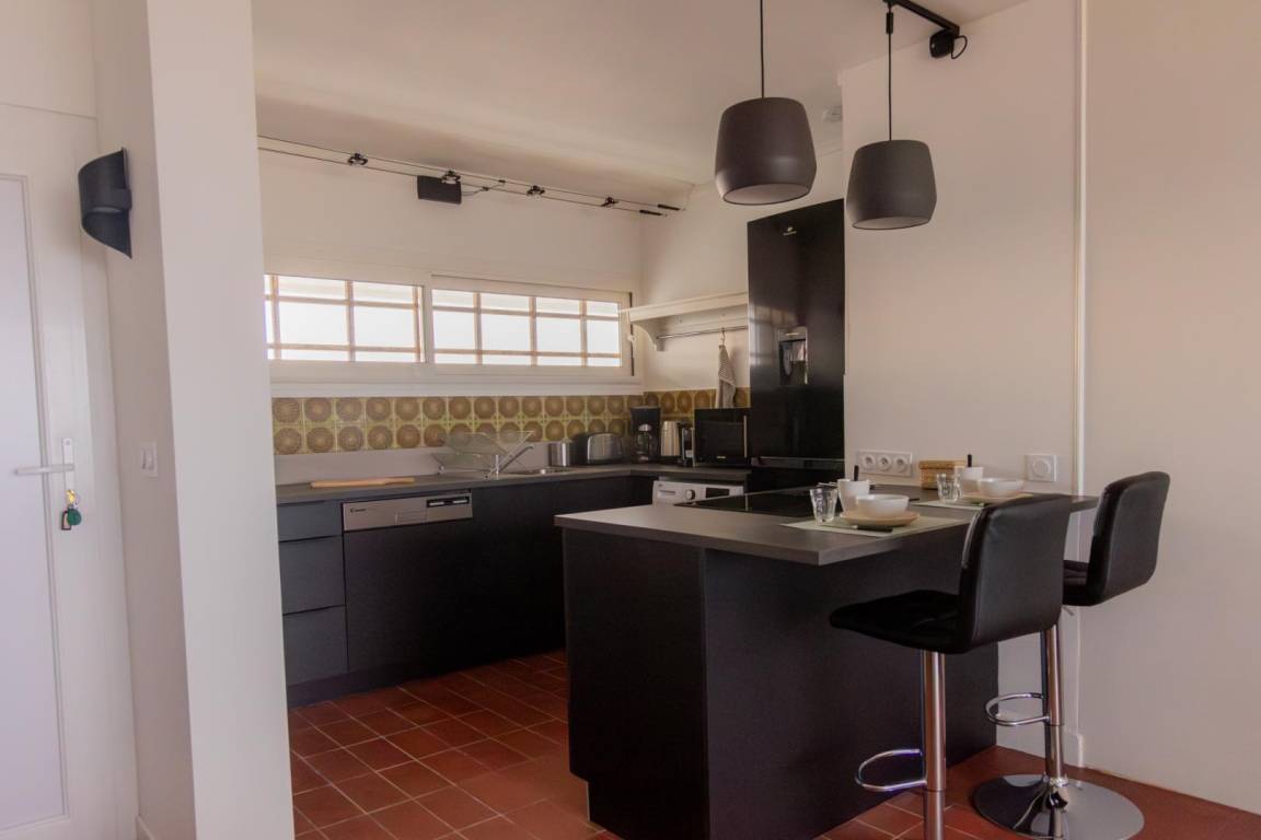 Im 1. Stock: Wohnzimmer mit Küche (gut ausgestattete LL LV MO TV DVD..) mit Blick auf die Terrasse, Schlafsofa 2 Plätze, 2 Schlafzimmer 1 Bett 180 und 2 Betten 90, Duschraum, wc, kleine Veranda mit Trockengestell. Zusätzliche elektrische Heizung.