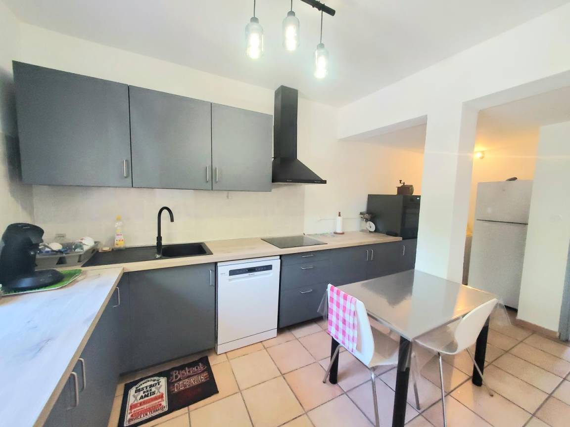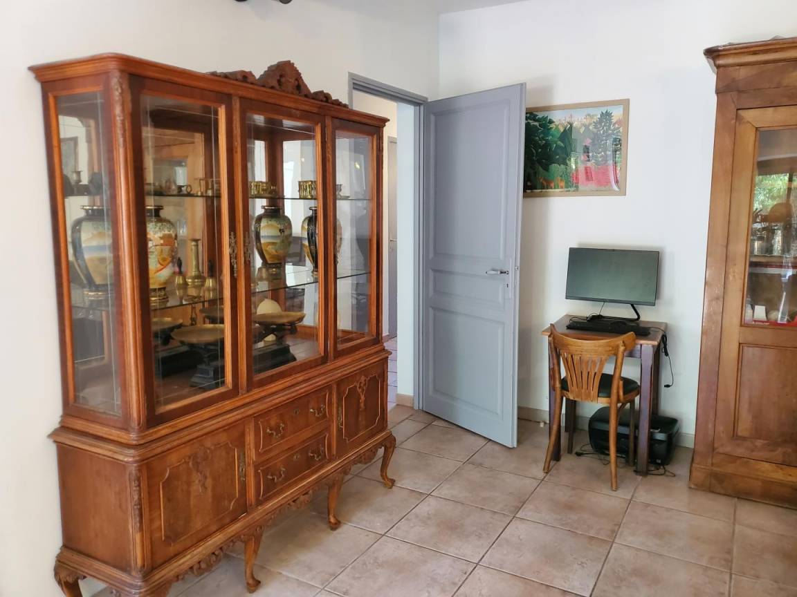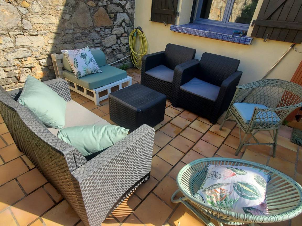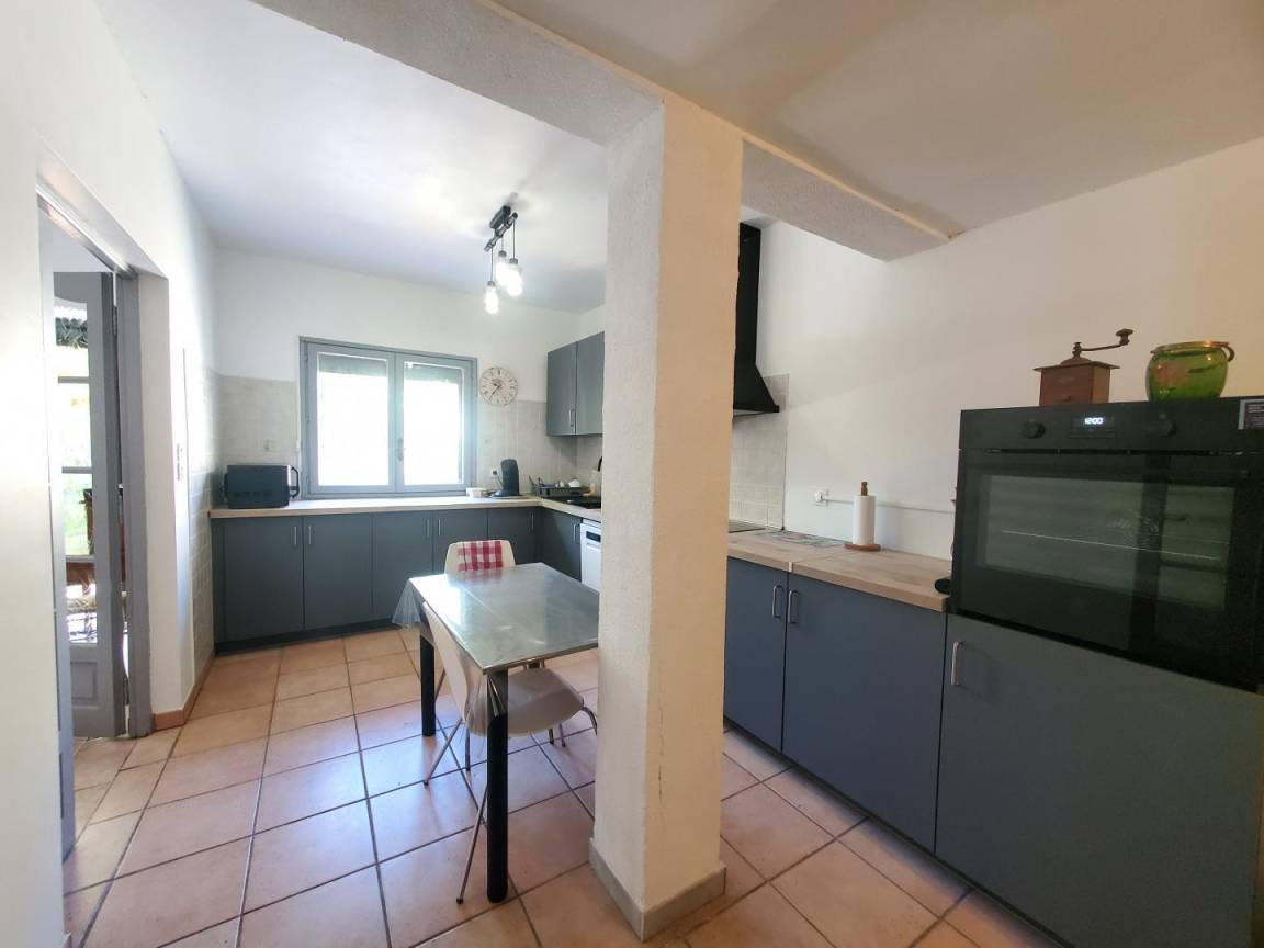 Im 1. Stock: Wohnzimmer mit Küche (gut ausgestattete LL LV MO TV DVD..) mit Blick auf die Terrasse, Schlafsofa 2 Plätze, 2 Schlafzimmer 1 Bett 180 und 2 Betten 90, Duschraum, wc, kleine Veranda mit Trockengestell. Zusätzliche elektrische Heizung.