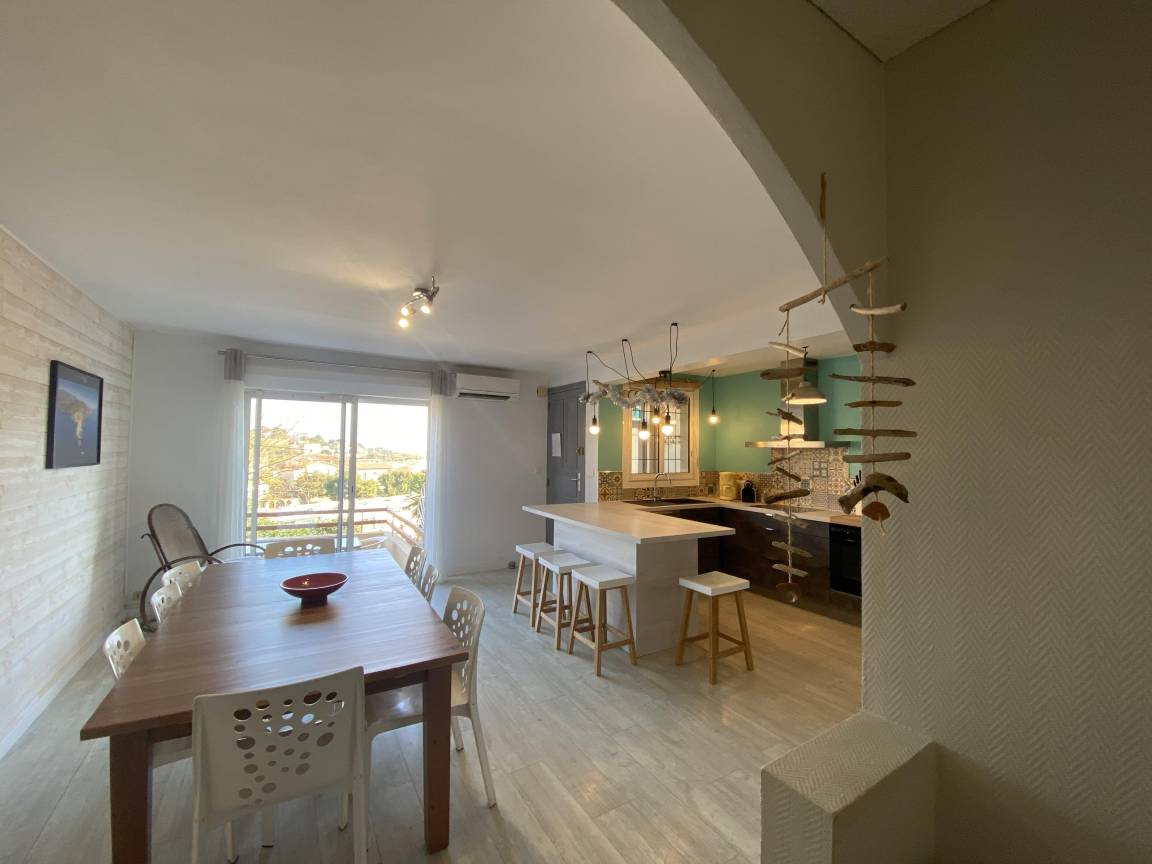 „Logement très propre et agréable. Nous étions 5. L'espace de vie est spacieux, tout comme les chambres, la cuisine très bien équipée, 2 toilettes, 2 salles de bain. Belle vue sur la mer, au calme et le jardin à l'étage est appréciable. Merci pour les explications avant l'arrivée. Nous avons passé un très bon séjour et gardons l'adresse“