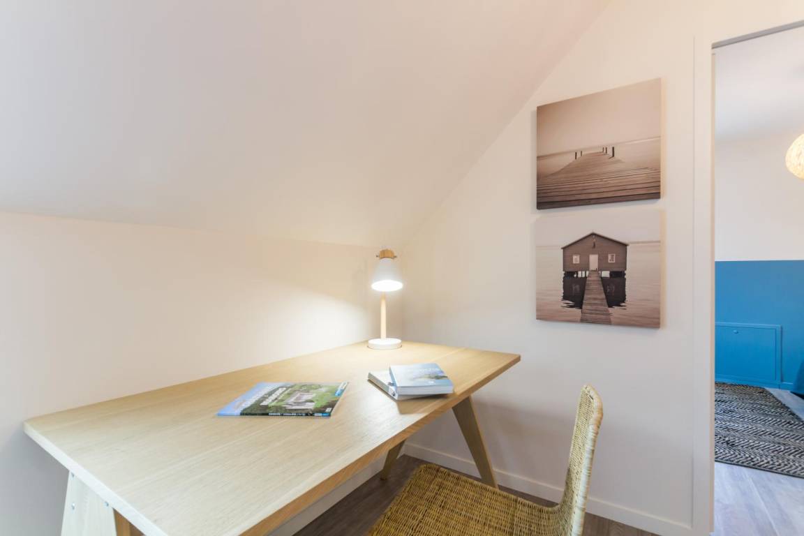 Freistehendes Haus. Voll ausgestattete Küche (Backofen, Geschirrspüler, Gefrierschrank, Mikrowelle) mit Zugang zum Wohnzimmer (TV, Blu-ray-DVD-Player, Internet). Duschbad. WC. Hauswirtschaftsraum (Waschmaschine und Trockner). Im ersten Stock: Flur mit Schreibtisch, Schlafzimmer 1 (1 Bett, 160 x 200 cm), Badezimmer mit WC, Schlafzimmer 2 (2 Betten, 90 x 200 cm, die zusammengestellt werden können). Babyausstattung auf Anfrage. Bettwäsche und Handtücher werden gestellt. Die Betten sind bei Ankunft bezogen. Reinigungsservice inklusive. Elektrische Fußbodenheizung inklusive. Alle Nebenkosten inklusive. Privater, umzäunter Garten. Terrasse. Gartenmöbel. Grill. Parkplatz. Das Erdgeschoss ist barrierefrei. Zwischenreinigung und Wäschewechsel sind auf Anfrage beim Eigentümer möglich.