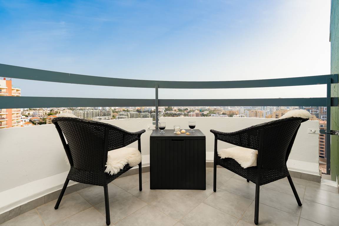 Das helle, gemütliche 50 qm großes Apartment befindet sich im 18. Stock des Gebäudes Torre Verde. Es hat ein Wohnzimmer mit integrierter Küche, ein Schlafzimmer, ein Bad und zwei 7 qm große Balkone. Es bietet Platz für drei Erwachsene oder zwei Erwachsene und zwei Kinder. Ein großzügiger saisonaler Swimmingpool, Tennisplatz sowie ein Parkplatz in der Tiefgarage stehen unseren Feriengästen kostenlos zur Verfügung . Das Apartment hat eine neue Klimaanlage, WLAN, Smart-TV. Für die Verdunkelung und Sonnenschutz sorgen automatische Rolläden. Die Balkone sind nach Osten bzw. Nordosten ausgerichtet und von hier aus können Sie den Blick auf den Atlantik, Stadt Portimão und Monchique Gebirge genießen.