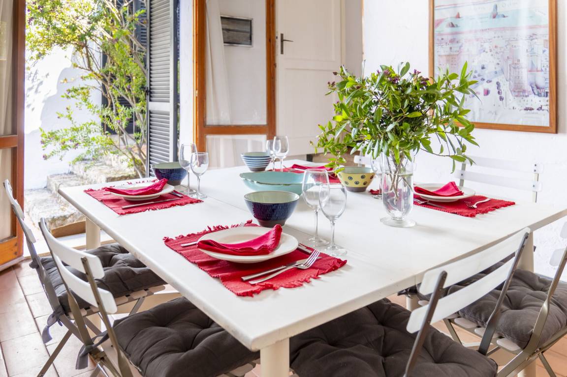 Veranda 1: Außenbereich für das Essen im Freien, Esstisch, Gartenmöbel, Terrassenmöbel.