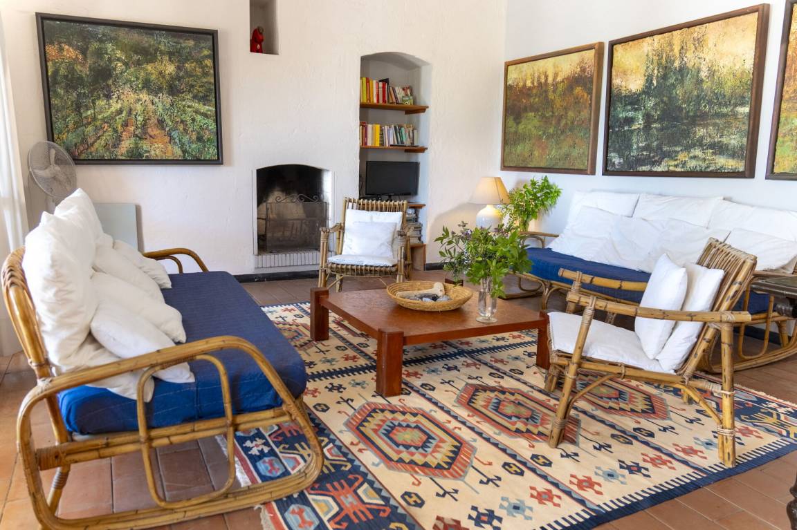 Wohnzimmer: Kamin, WiFi Internet, TV, Stereoanlage, Ausgang auf den Garten, Ausgang auf die Veranda.