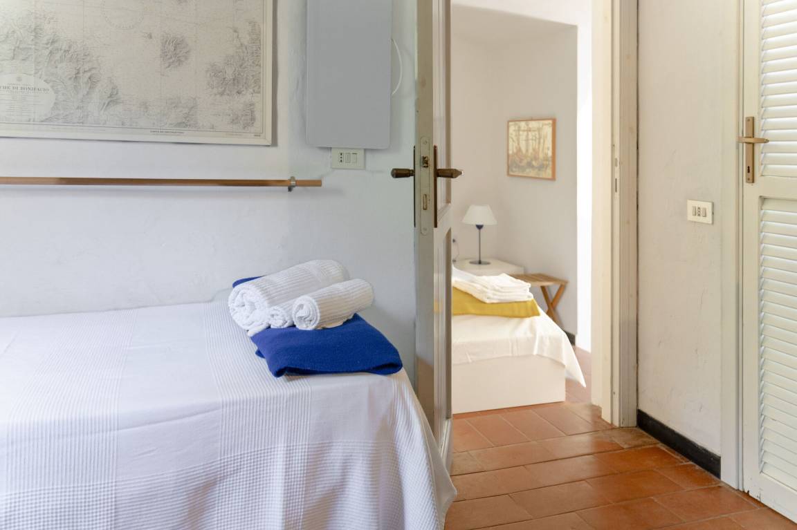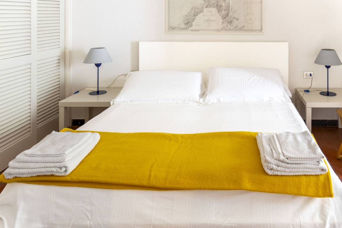 Schlafzimmer: Doppelbett, WiFi Internet, tragbarer Ventilator, Ausgang auf die Veranda.