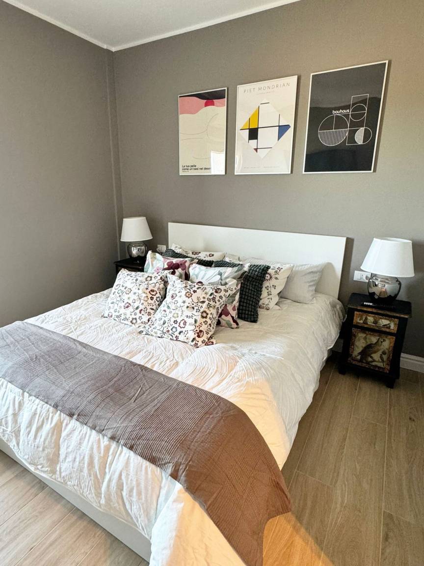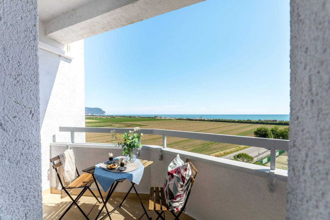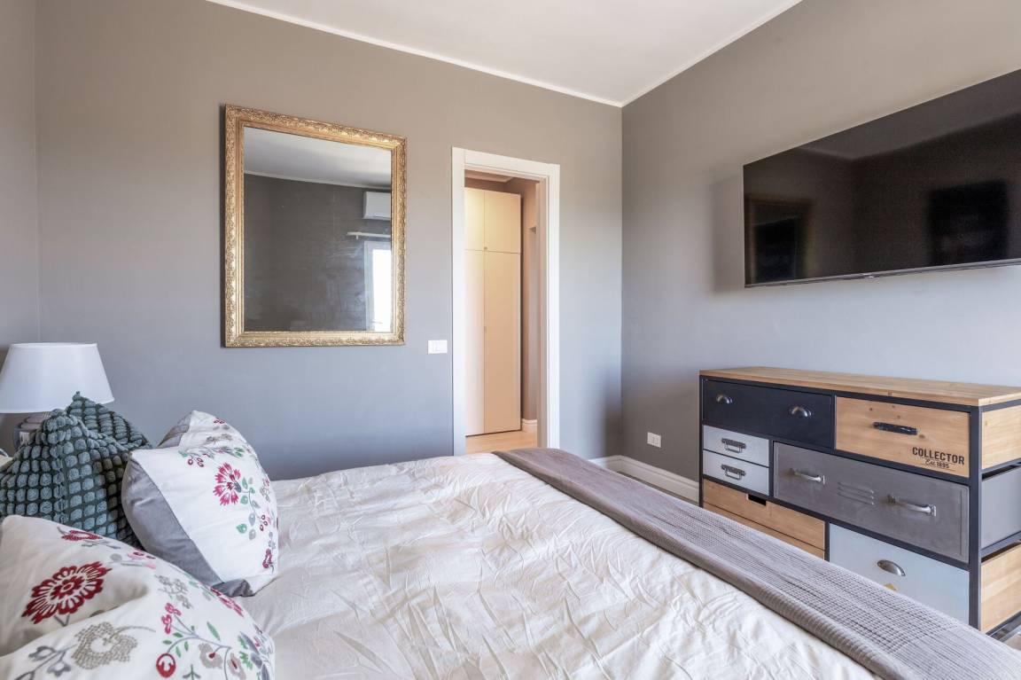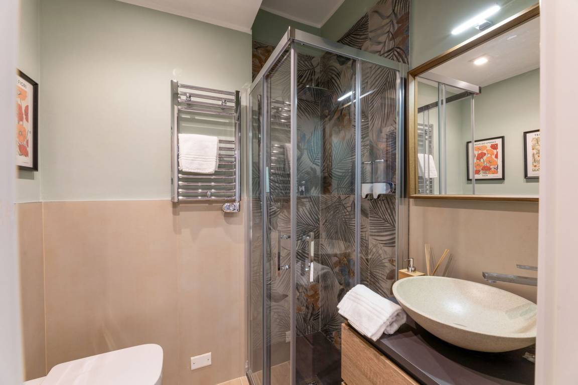 Schlafzimmer mit Bad: Doppelbett, WiFi Internet, Klimaanlage, Satelliten-TV, Waschbecken, WC, Bidet, Fön, Ausgang auf den Balkon.