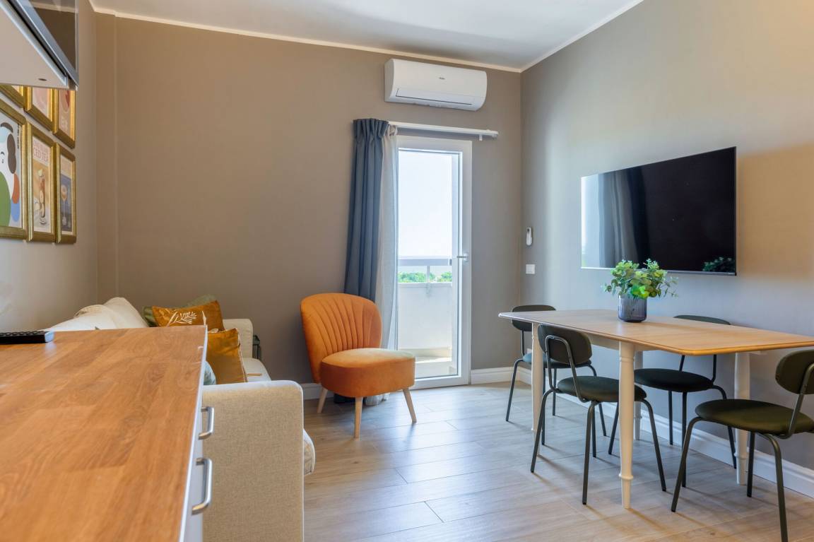 Wohnküche: gut ausgestattete Küche, Esstisch, Kühlschrank, Tiefkühler, Herd, Ofen, Bügeleisen, Italienische Kaffeemaschine, Sessel, Doppel-Schlafsofa, WiFi Internet, Klimaanlage, Satelliten-TV.