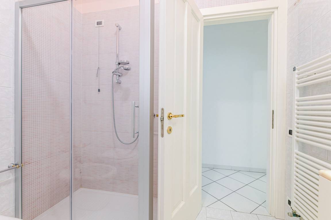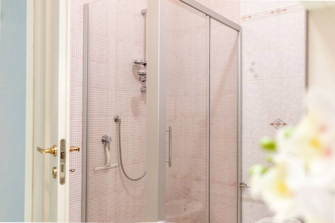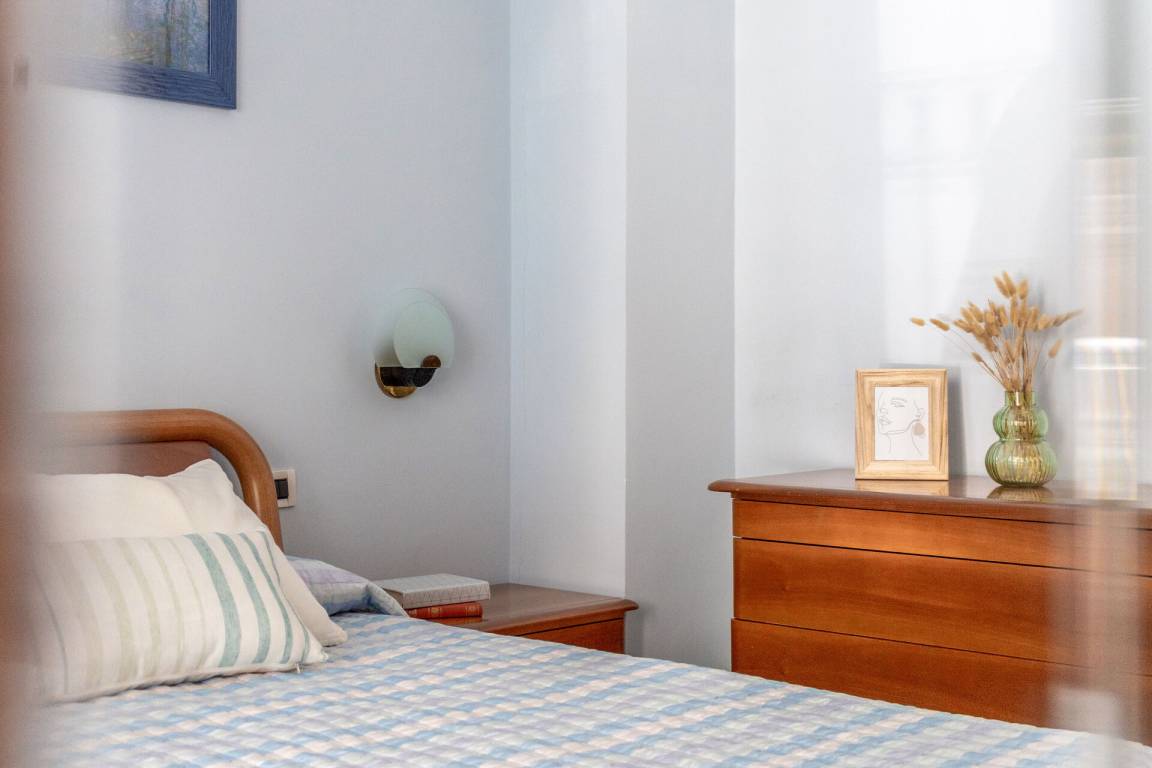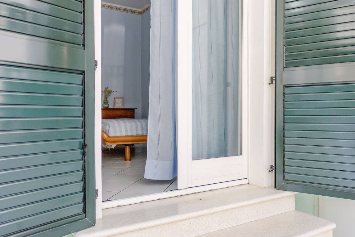 Schlafzimmer mit Bad: Doppelbett, WiFi Internet, Klimaanlage, Waschbecken, WC, Bidet, Dusche, Fön, Waschmaschine, Ausgang auf den Patio.