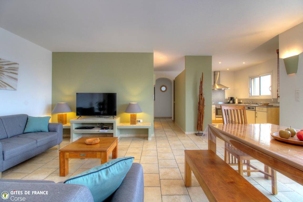 „Séjour parfait en famille avec une magnifique vue sur la baie de santa giulia. Villa impeccablement aménagée, très agréable à vivre (climatisation, piscine, 2 chambres séparées avec sdb, nouveau salon...) et très bien entretenue par les propriétaires très sympathiques!“