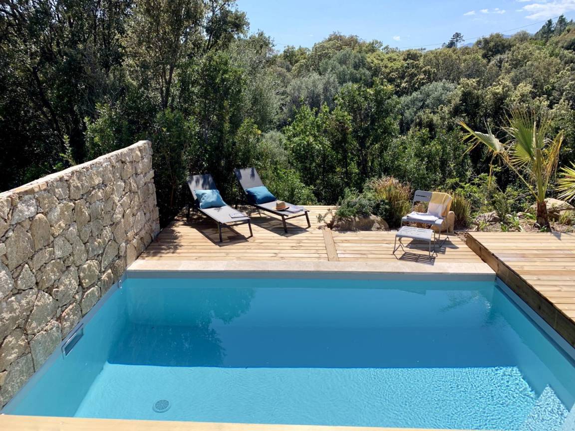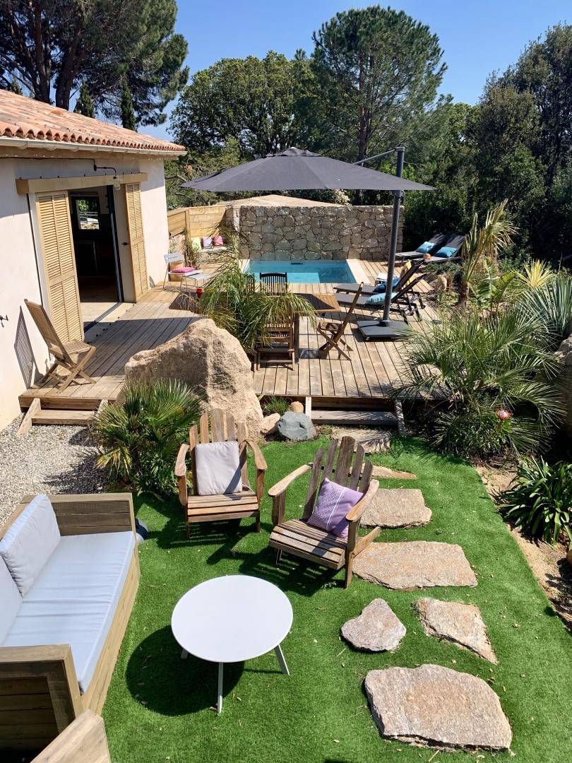 „Maison parfaitement équipée, décorée avec beaucoup de goût et d’attention. On se croirait au paradis. Au calme, entouré par la verdure et les plantes, aucun vis-à-vis. Idéalement situé. Et en plus le restaurant à 1 km avec chants corses le mercredi à ne rater sous aucun prétexte. Allez-y les yeux fermés vous serez épatés.“