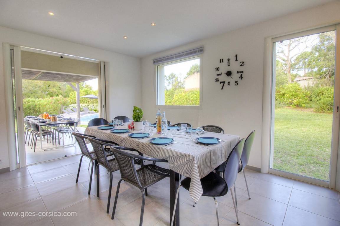 „Réservation conforme à la description. Les chambres sont spacieuses avec une litterie très correcte. Les draps et serviettes sont très propres et agréables. Les sdb, salles d'eau et wc sont assez nombreuses pour 10.La luminosité de la maison est très superbe. Les lieux de vie sont très adaptés pour un séjour de vacance. Nous avions loué la maison et l'annexe, ce qui permet à 2 familles de garder une certaine intimité. Nous avons toujours mangé tous ensemble dans la maison principale. La piscine est vraiment top. (et chauffée, indispensable fin avril).L'emplacement est idéal pour visiter le sud de la Corse. Le séjour fut donc très agréable malgré un temps capricieux et froid.“
