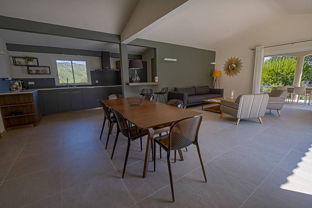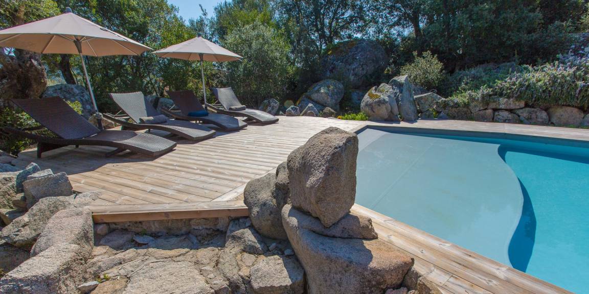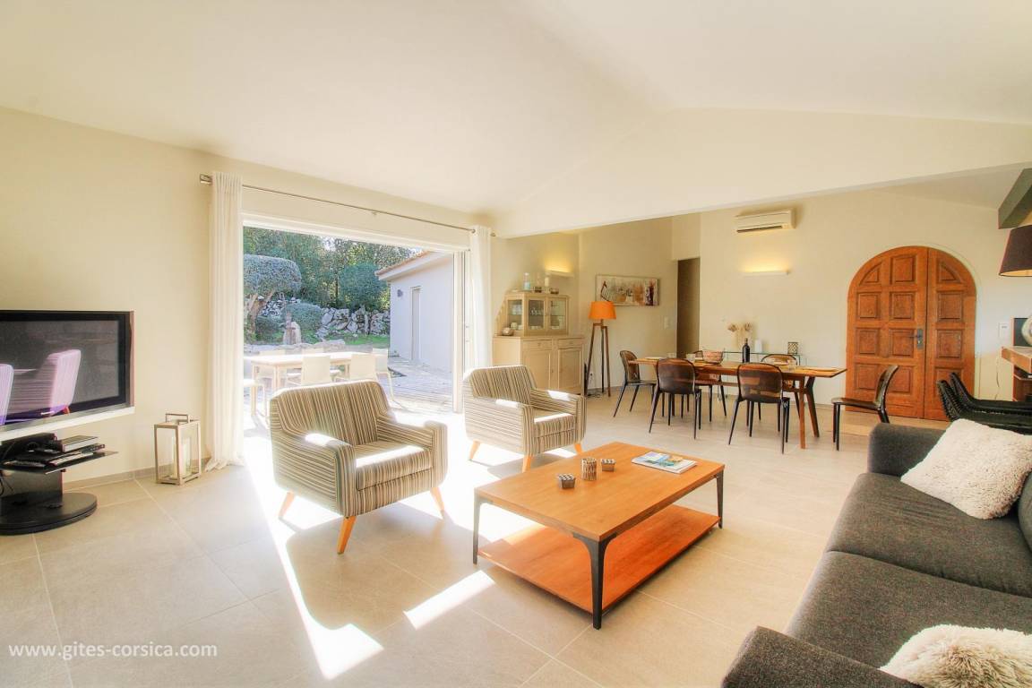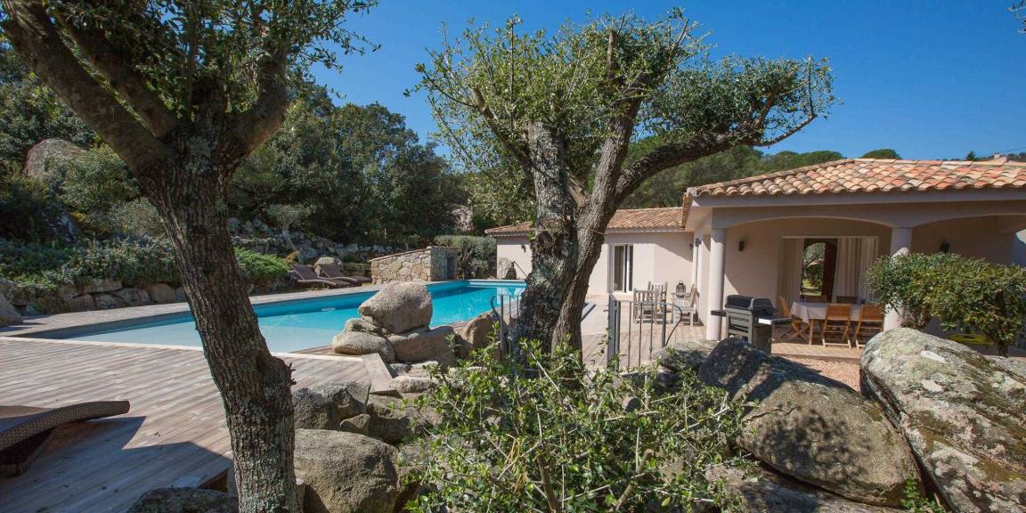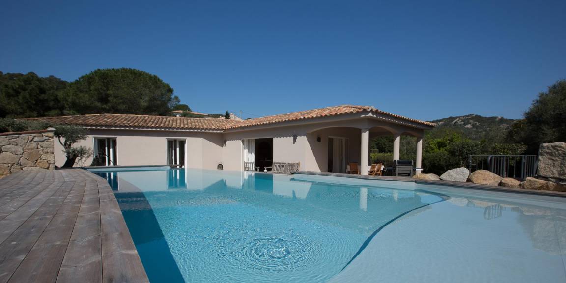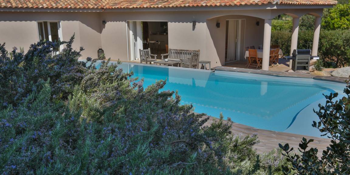 „- maison de plein pieds très pratique quand on a des petits et spacieuse. - belle piscine a débordement avec plateforme spéciale pour petit enfant (très pratique) - jardin paysagé autour de la piscine très raffiné ainsi qu'un espace extérieur couvert, pour y prendre les repas. - belles plages tout près en voiture. Pas loin de Porto vecchio aussi. - Accueil de la propriétaire très agréable. NB: à recommander pour un séjour en famille.“