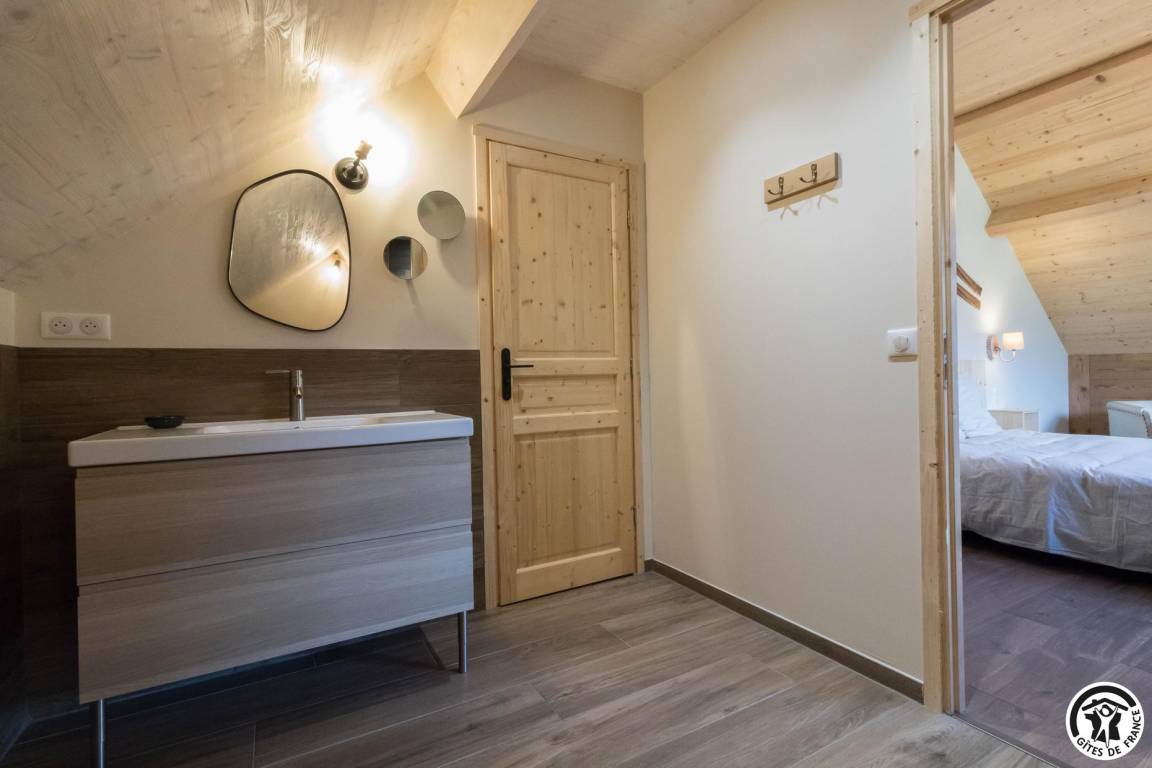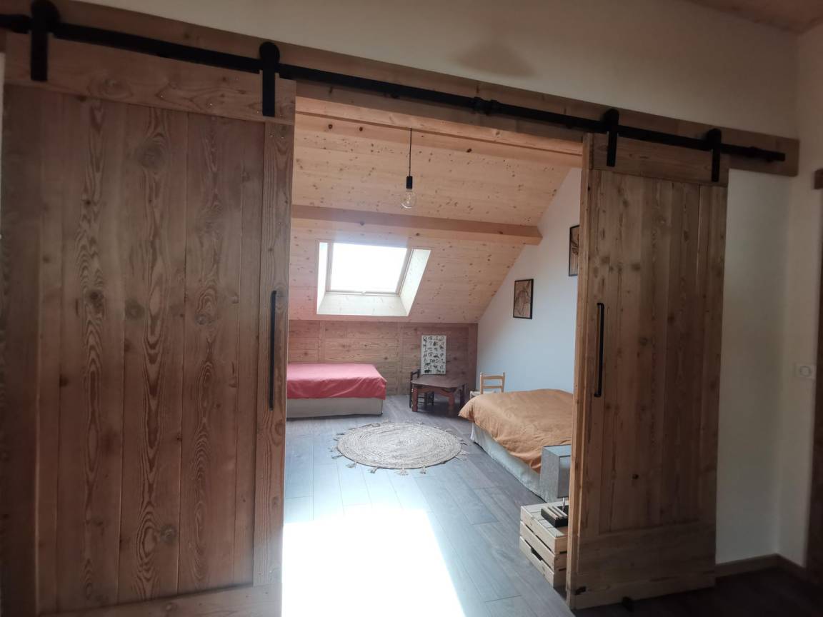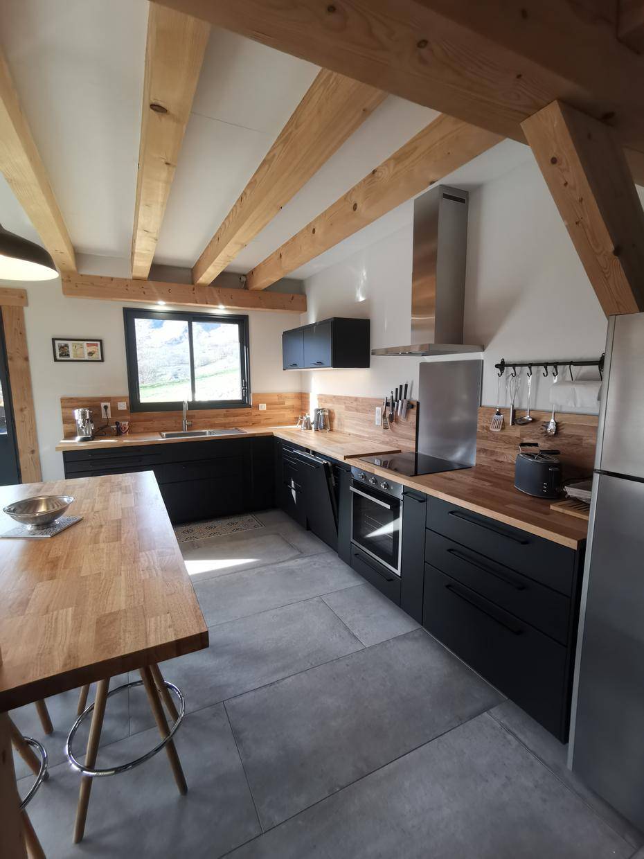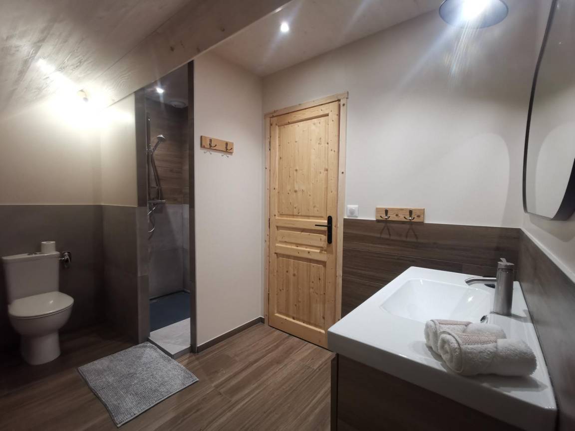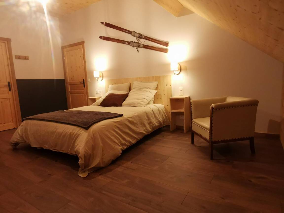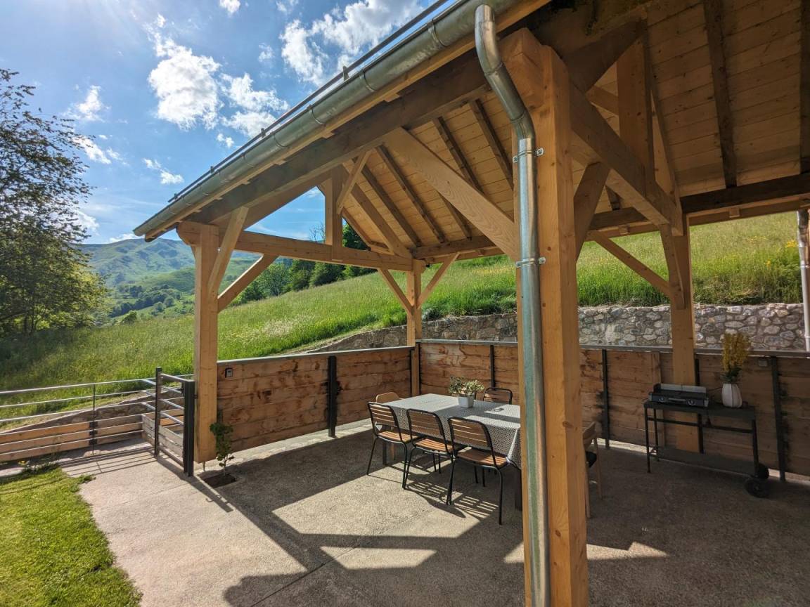 „Superbe gîte. Vue panoramique sur les montagnes. Gîte très chaleureux, bien équipé. Les chambres sont très grandes, avec chacune leur salle de bain WC. Gite très calme, tout au bout du village. La voiture est indispensable pour les courses.“