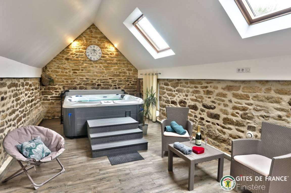 „Gîte très joli, et parfait pour un séjour en pays bigouden. Le jacuzzi, privé et sans restriction horaire, est parfait au retour des ballades. Le gîte est confortable et très propre. Merci à Marie pour son accueil et sa gentillesse. Nous conserverons l'adresse et la partagerons.“