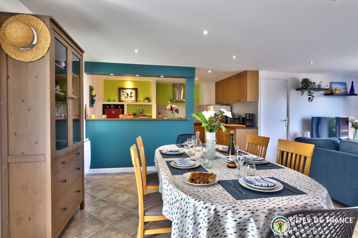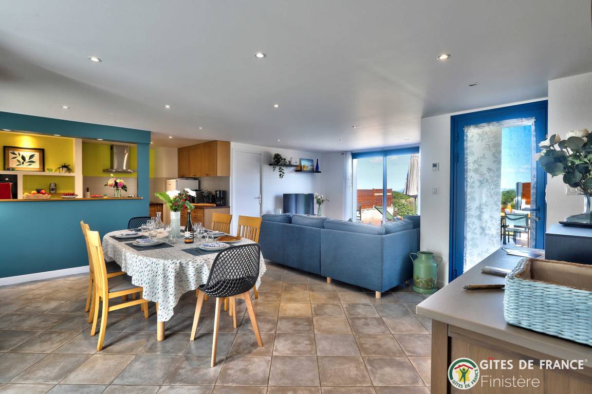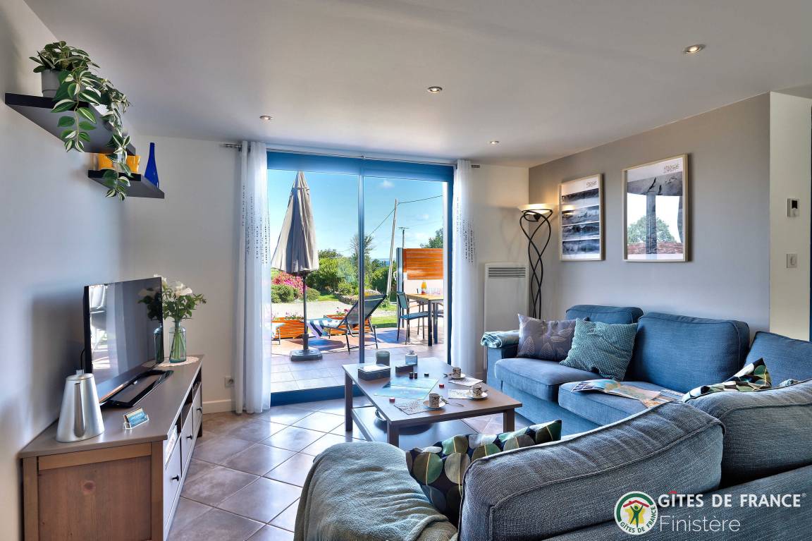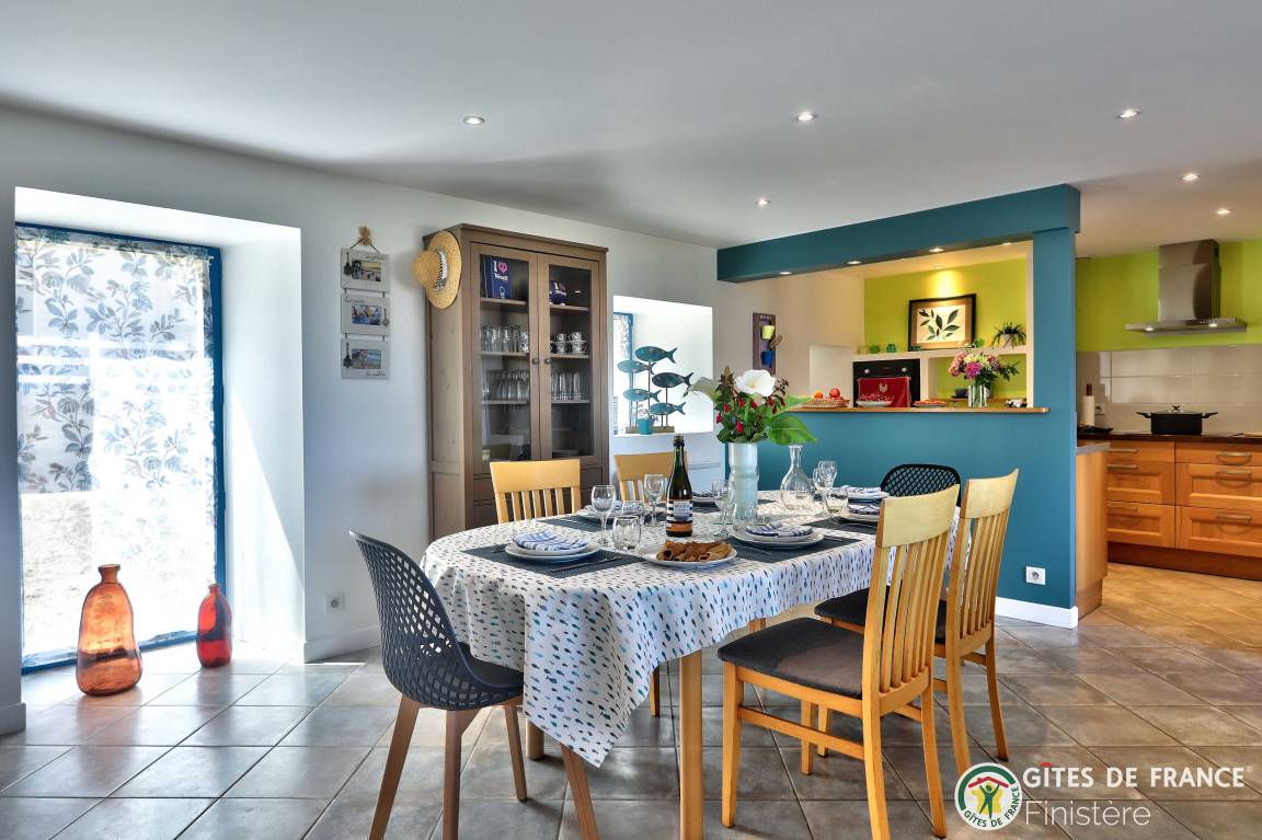 „Beau gite, spacieux, confortable, joliment décoré et bien équipé. Belle vue sur la campagne et la mer. A proximité de Poullan sur mer (commerces) et non loin de Douarnenez, Pont croix et Audierne.La situation du gite nous a permis de visiter la Bretagne des villages, des ports et des plages. l'accueil des propriétaires a été très sympathique et généreux. Une expérience a renouveler!“