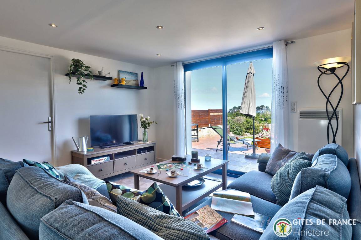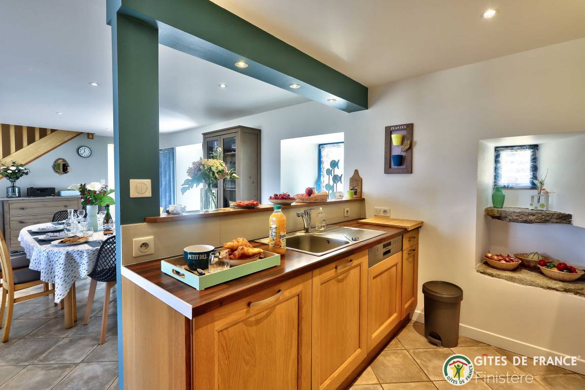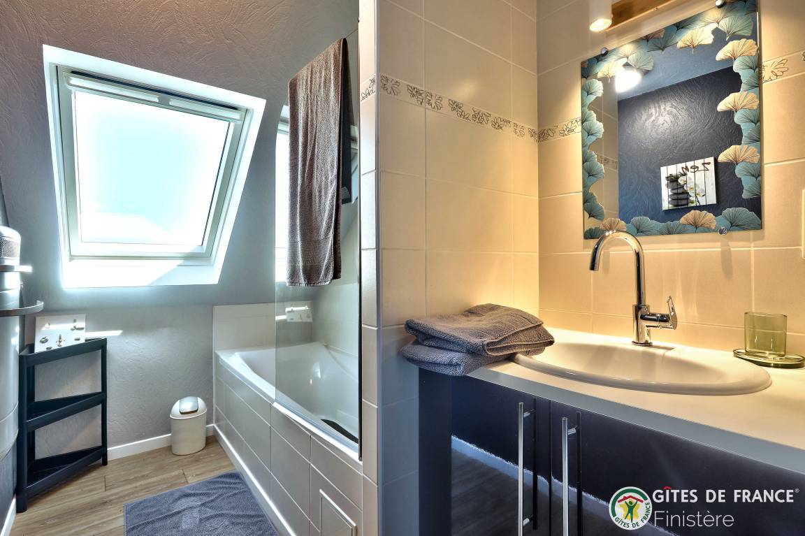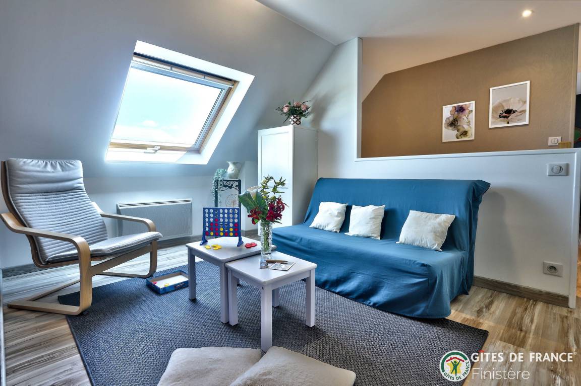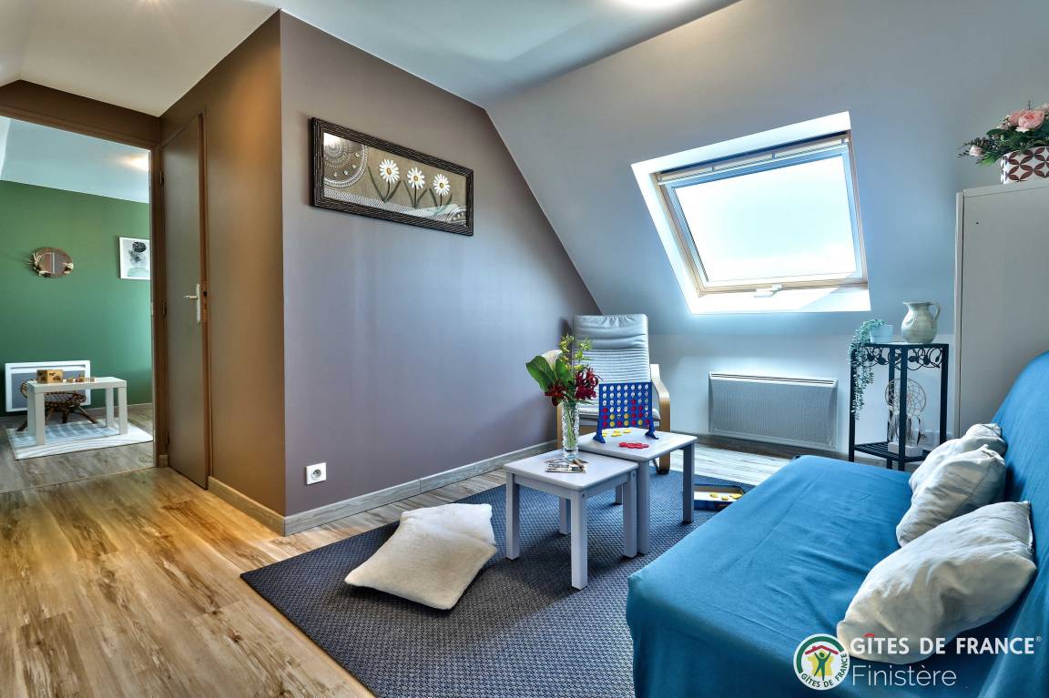 „Quel bonheur d'avoir séjourné une semaine dans ce gite ! On s'y sent comme chez nous ! Tout est bien pensé, avec de surcroit, un canapé particulièrement confortable, adapté pour le nombre de personnes. Tout est décoré avec goût, la vaisselle est jolie, en nombre suffisant. Il ne manque rien ! Nous avons également apprécié les petites intentions et les fleurs naturelles ! Nous nous sommes promenés sur le GR34 avec plaisir. Quelle vue fantastique ! Peut-être pas adapté à de jeunes enfants. Le lieu est pratique pour visiter la région que nous avons découvert: Douarnenez, avec ses artisans et artistes, le chemin de la sardine, ses restaurants (L'amuse-louche, l'insolite, remarquables), Pont-croix, la pointe du raz, Locronan, la baie d'audierne...C'est encore très sauvage. Quel fut aussi notre bonheur d'avoir une semaine ensoleillée, avec peu de touristes ! La région mérite qu'on y retourne. Et n'oublions pas la propriétaire qui nous a très bien accueillis et conseillés ! Merci également d'avoir accepter de retarder notre départ ! Nous avons pu aller au marché de Tréboul et goûter les fameuses crêpes sur la place ! A ne manquer sous aucun prétexte ! Une petite attention aussi pour tous les commerçants que nous avons croisé, qui sont très serviables, et d'une gentillesse appréciable. Rien ne manquait pour savourer cette belle semaine !Au plaisir de revenir !“