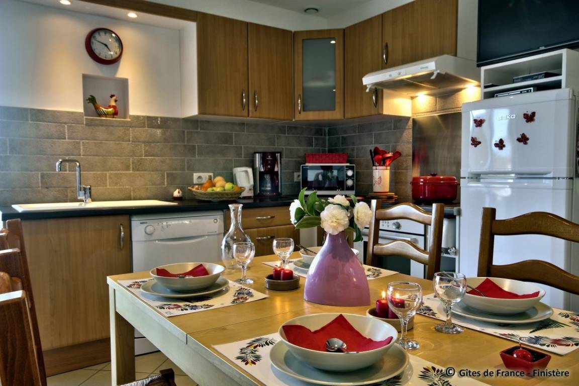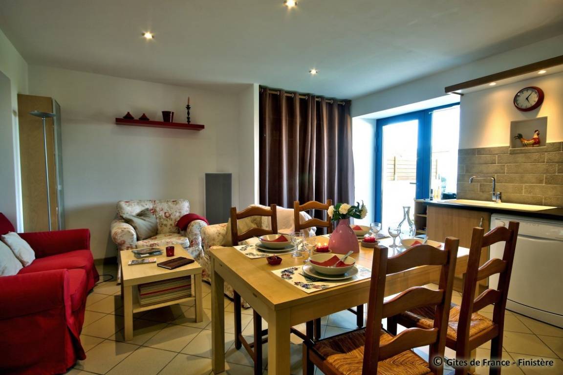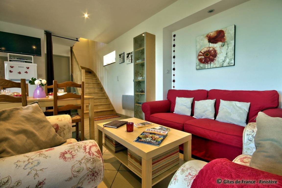 „Gîte vraiment tres agréable, vue magnifique, tout proche du superbe GR34 et toutes les visites et nombreuses activités à faire en Finistère Sud. Mitoyen mais très bien isolé nous n'avons pas été gênés par le bruit, un jardin très agréable également. Un très bon accueil“