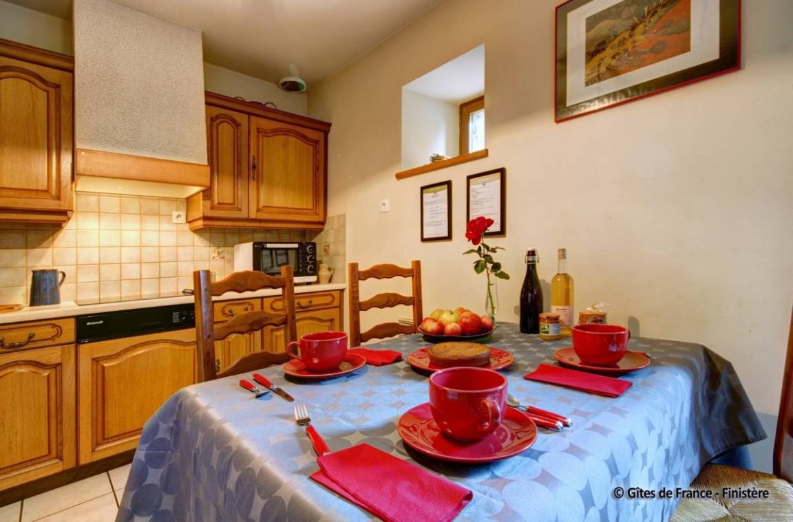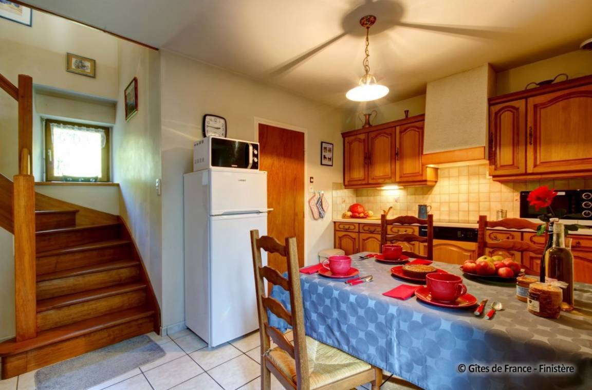 „Sejour tres agreable dans ce gite mitoyen bien amenagé. En bas sejour avec cuisine ouverte et wc. A l’etage deux chambres avec velux et une salle de bain complète avec wc. Tres bon accueil du propriétaire avec un cadeau d’arrivée que nous avons bien apprécié. Le wifi laisse à desirer comme dans beaucoup d’endroits isolés mais si on tout est parfait. Toutes les facilités sont disponibles, lave linge et seche linge, tv etc… Assez central pour circuler dans le Finistere et surtout tout près de la magnifique foret de Huelgoat. Nius avons passé une très bonne semaine ensoleillée !“