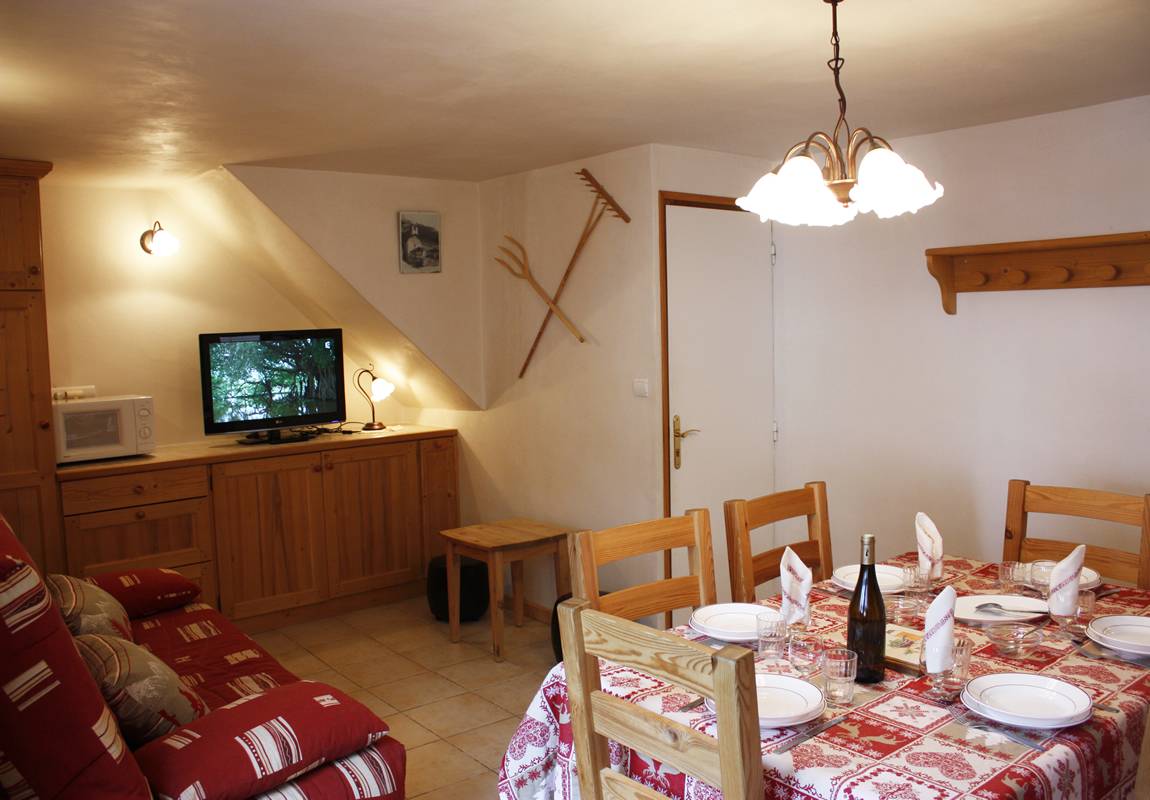 Doppelhaushälfte bestehend aus 2 Gîtes + Ferienunterkunft der Eigentümer. 1. Stock: Wohnzimmer-Küche Lounge-Bereich (1 Doppelschlafcouch), WLAN-Verbindung, 2 Schlafzimmer (1 Doppelbett / 1 Doppelbett, 1 Einzelbett), Badezimmer (Dusche), WC getrennt. Balkon. Skigebiet Pralognan-la-Vanoise 100 m, Champagny-en-Vanoise/Paradiski 11 km, Courchevel/3 Vallées 22 km. Gewässer 14 km. Schwimmbad + Eisbahn in 200m Entfernung.